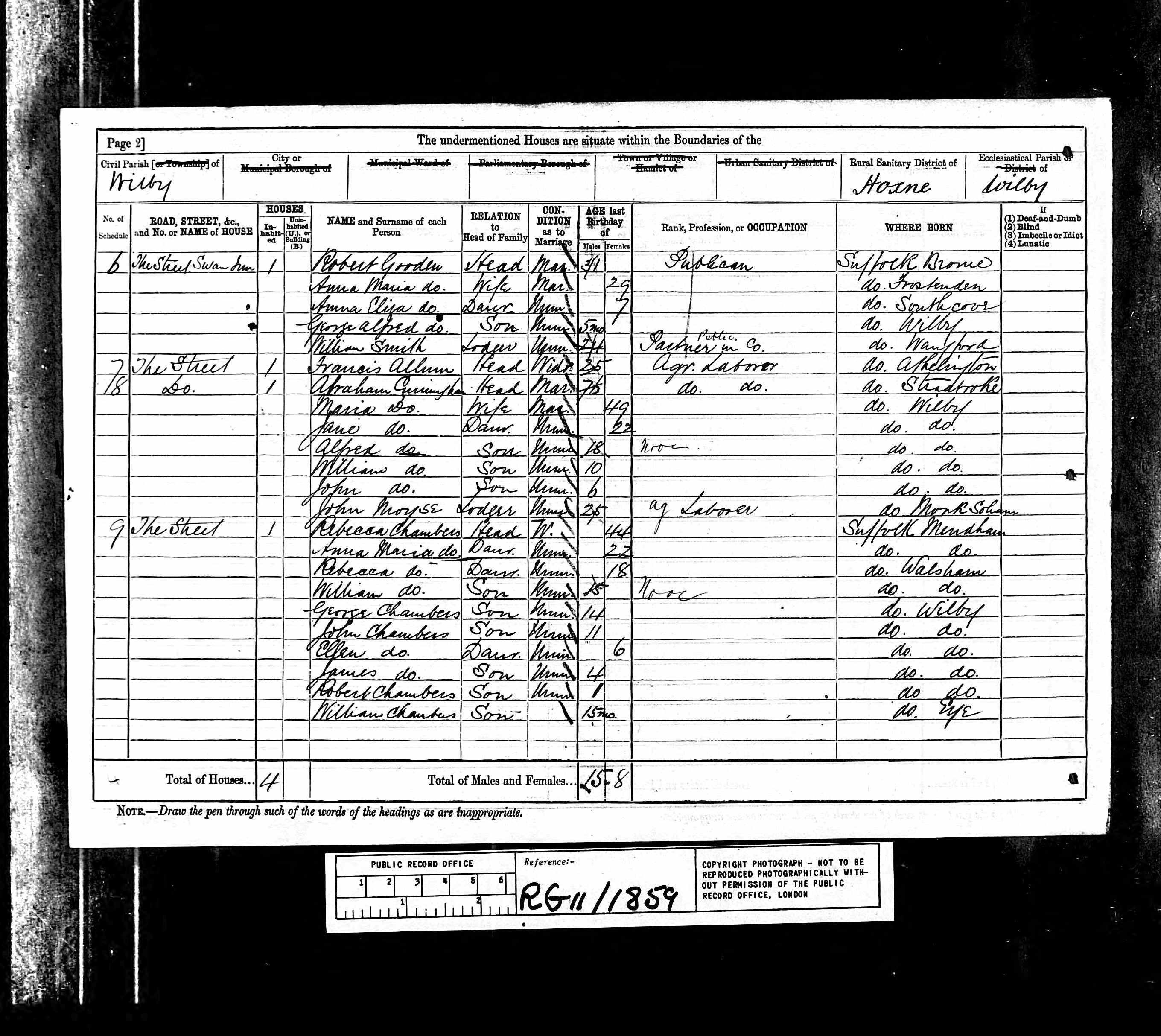 The young family did not stay long. By 1863 William and Rebecca had relocated some twenty miles west to the parish of Walsham le Willows, where William found employment as a horseman on Blossoms Farm. A horseman, responsible for the care and working of the farm’s draught horses, was a step up from a general labourer, a position that required skill and carried a degree of standing among the farm workforce. Two more children were born here: Rebecca in 1863 and William George in 1865. However, by the time of George Henry’s birth in 1867q1 the family had moved again, this time to Wilby, a parish about two miles south of Fressingfield, where they would remain for the rest of William’s life. William’s mother had married Robert Chenery there in 1864, although she was widowed just a few months later. It’s possible that William relocated to be closer to his mother.