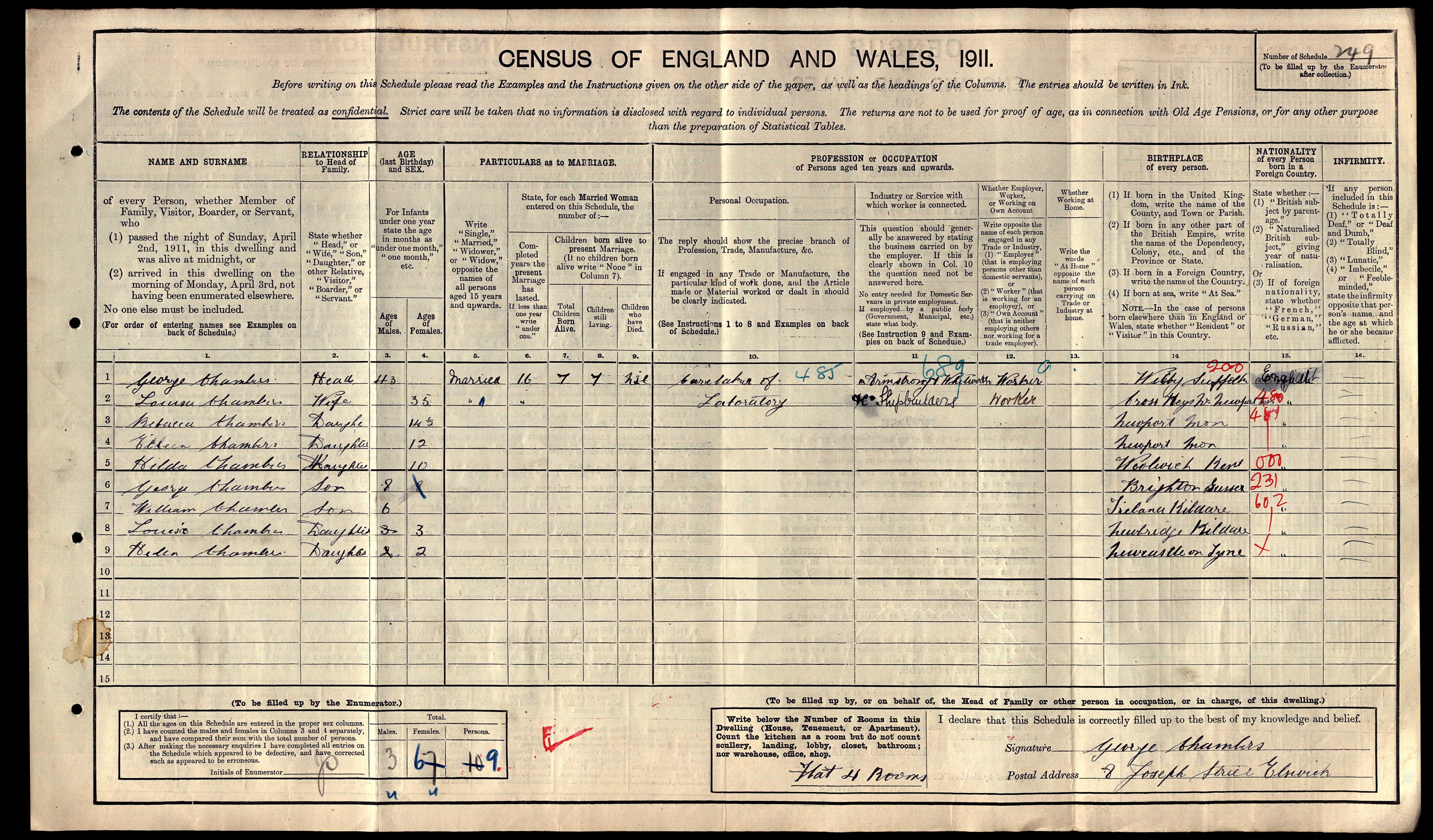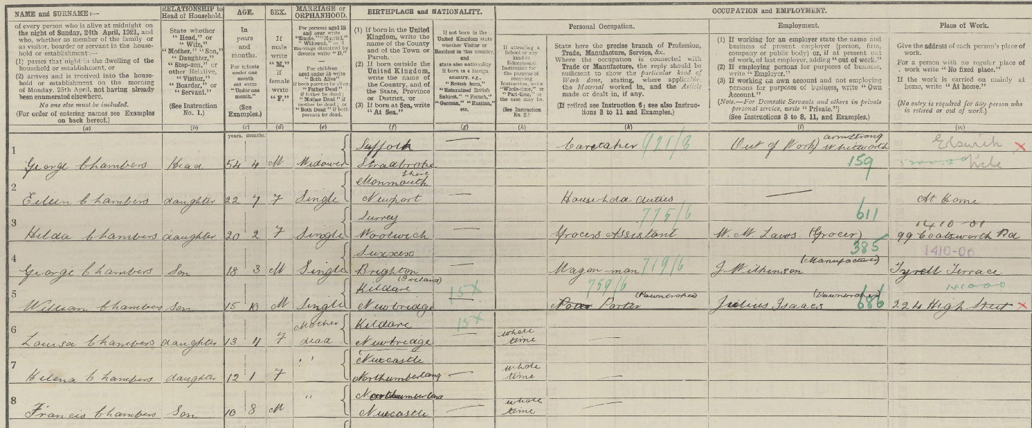 George Henry Chambers died on the 9th December 1923 at Cato Streeta6. He was fifty-five years old. It seems that his family knew how ill he was and were with him at the end. Eileen was the informant recorded on his death certificate and was present at the time of his death. The attending doctor gave the cause as bronchitis and a dilated heart, the legacy, perhaps, of years of exposure to coal smoke and damp Tyneside air which served to compound a persistent cough he had had since his time in India. He was buried three days later in the same grave as Louisa in St John’s Cemetery, Elswick. The distance from agricultural labourer’s son in north Suffolk to army sergeant on Tyneside spans barely two generations, but it reflects the broader forces reshaping English life in the late Victorian and Edwardian periods: the collapse of the rural economy, the pull of the military and the industrial cities, and the movement of people across the length and breadth of the British Isles. The Chambers family had been rooted in the same handful of Suffolk parishes for over a hundred and fifty years. George’s generation was the one that left, and the world his children inherited bore almost no resemblance to the one his grandparents had known.