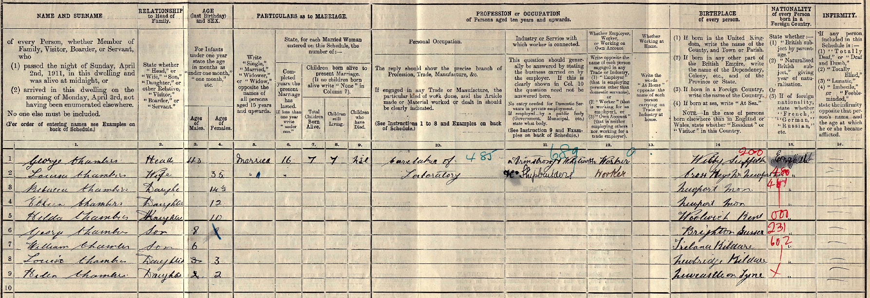 By the time of the census in April 1911g1, the family had moved to 8 Joseph Street in Elswick, a densely packed district of workers’ terraces on the banks of the Tyne.