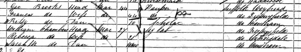 Anna Maria, quite probably named after Rebecca’s sister, was born on the 16th June 1860a21. By the 1861 census, the young family, William, Rebecca, and the infant Anna Maria (recorded as ‘Sarah M’), was living in Mendham, just a couple of miles north of Withersdale and Kett’s farmx1. They were living next door to Rebecca’s parents, George and Frances Brooks, both of whom were destitute. George Brooks was sick with consumption (tuberculosis) and unable to work. He died in May 1861 at just forty-three. It is a grim irony that the same disease would kill his daughter twenty years later.