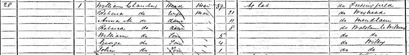 William Chambers was baptised on the 23rd June 1833 at St. Peter and St. Paul’s, Fressingfieldba1, the son of James Chambers, and Mary Ann Martin. He was the fifth of seven children, born into a family that was already struggling in the depressed agricultural economy of the 1830s. His father would end his days a pauper; William’s own prospects, as the son of a labourer in a parish with little to offer beyond farm work, were modest from the start.
