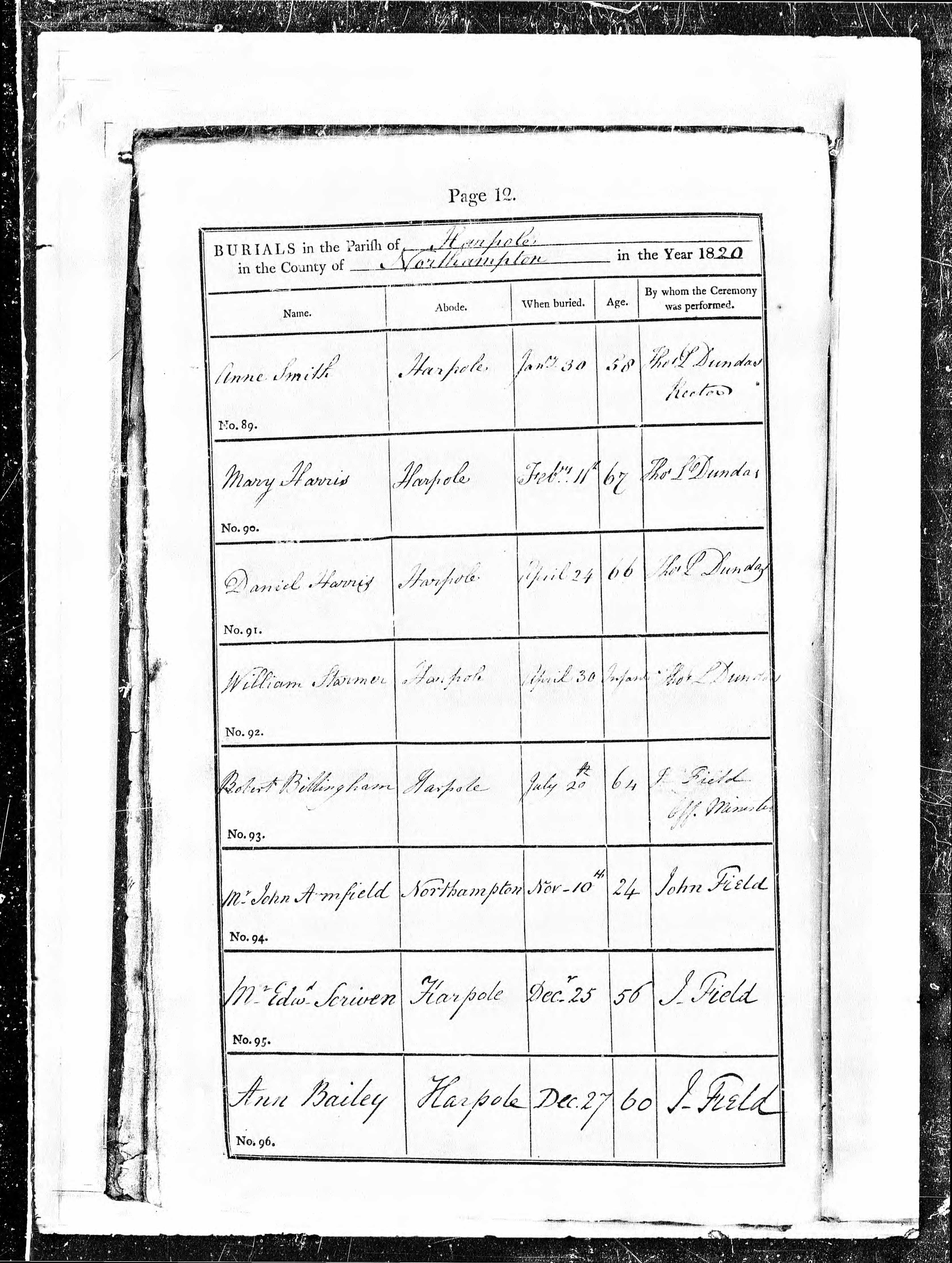 - Robert Billingham★ was resident on 20 Jul, 1820 in Harpole, Northamptonshire, England