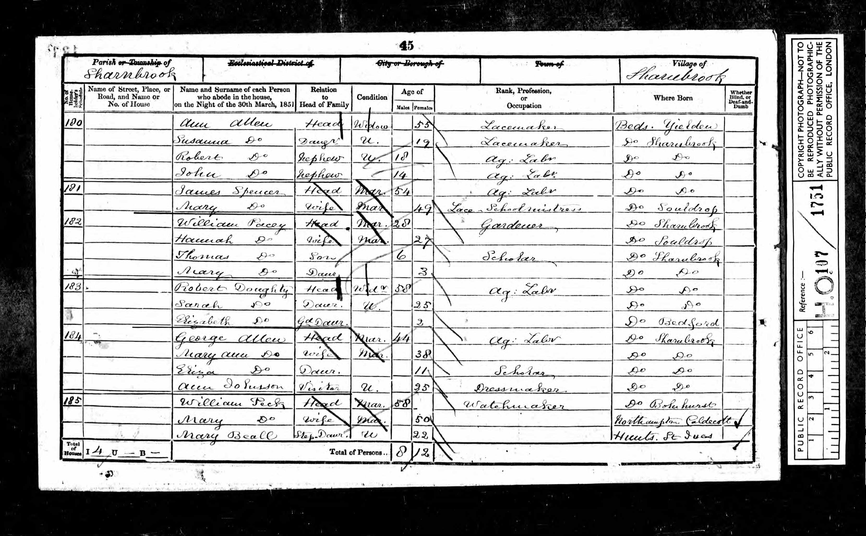 1851 England and Wales Census; Class HO107, Piece 1751, Folio 133, Page 45, Schedule 183.