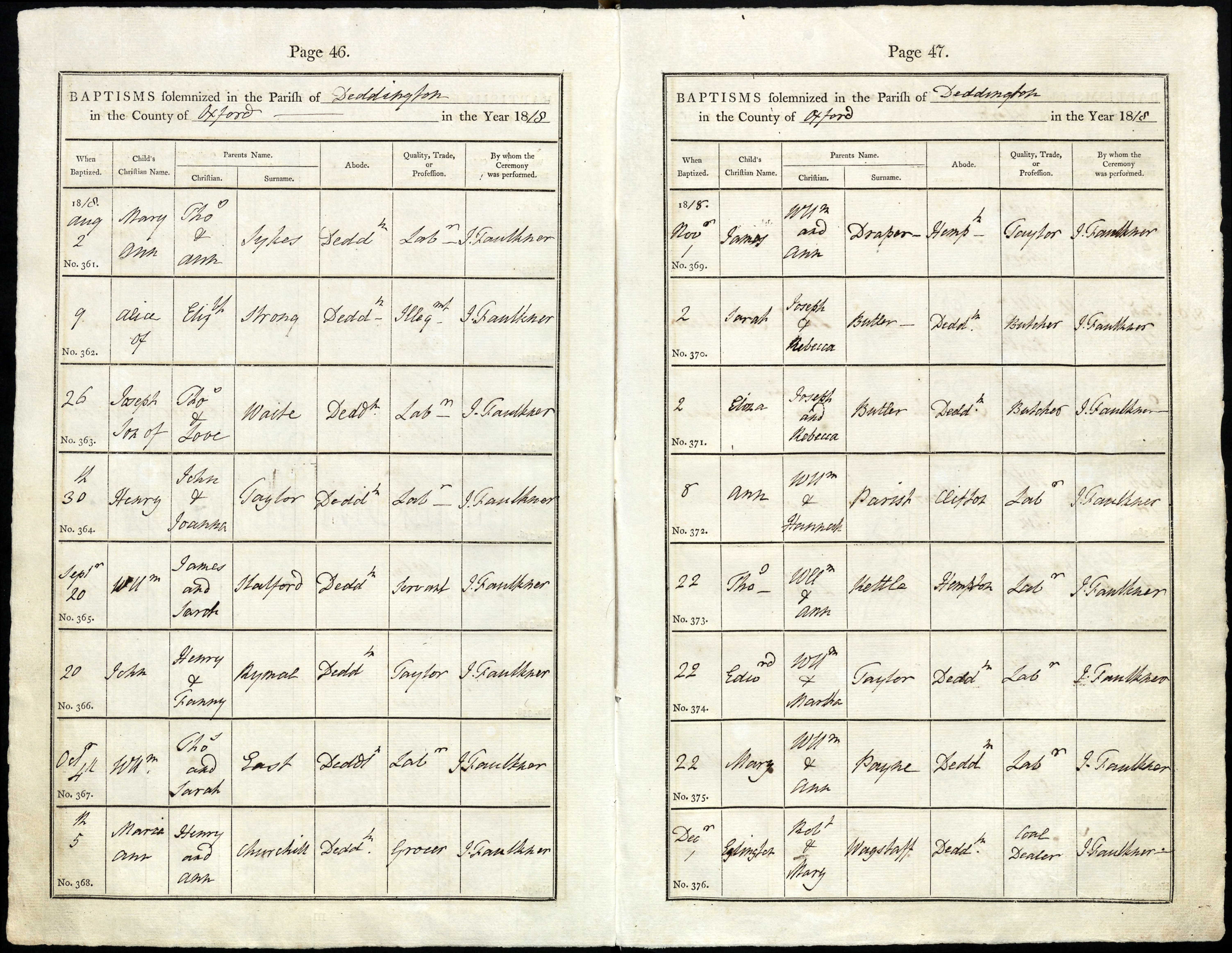 Cited from Parish Registers of St. Peter & St. Paul, Deddington, Oxfordshire (Church of England)