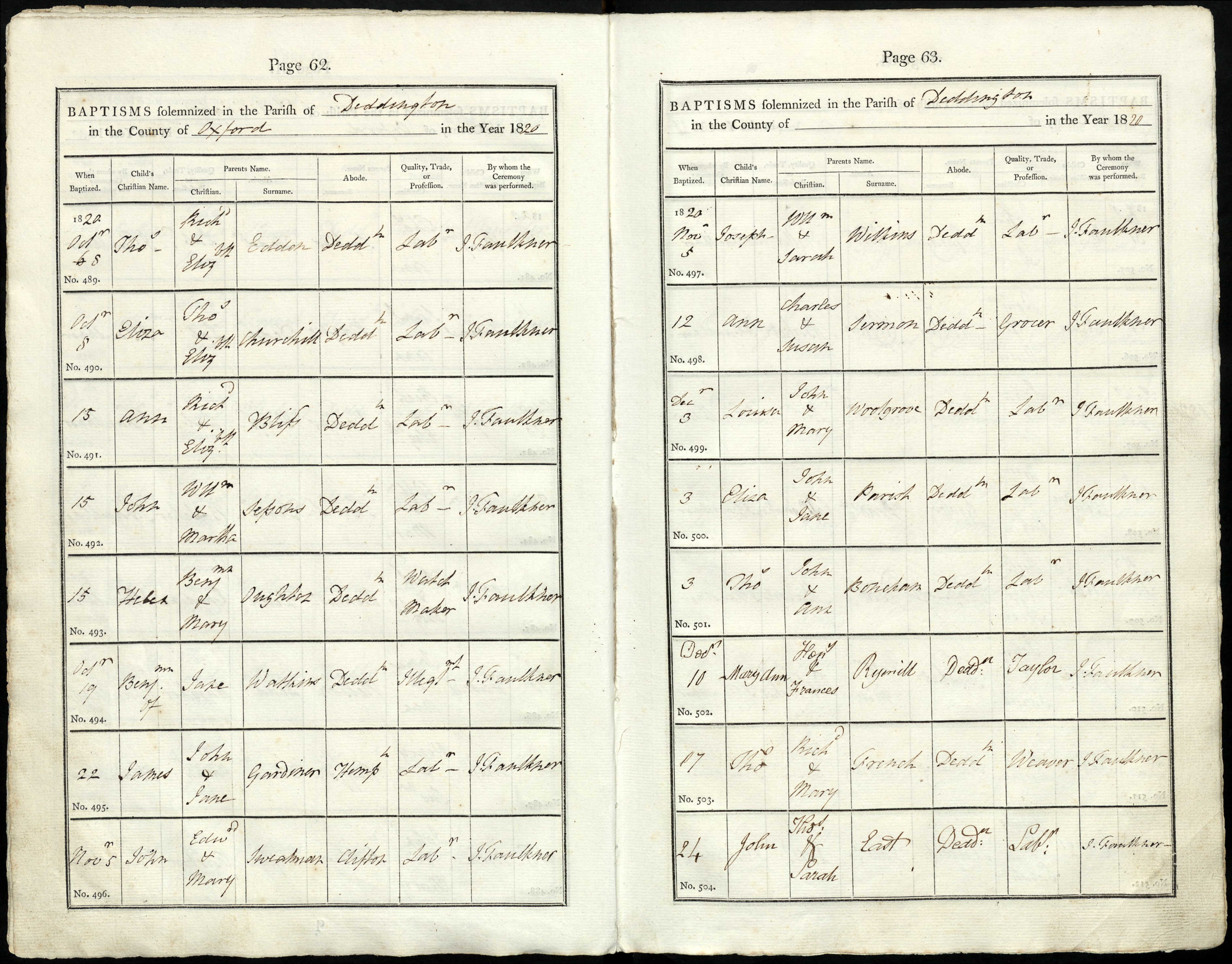 Parish Registers of St. Peter & St. Paul, Deddington, Oxfordshire; Baptism entry for Mary Ann Rymill, 10 Dec 1820, Page 63, No 502.