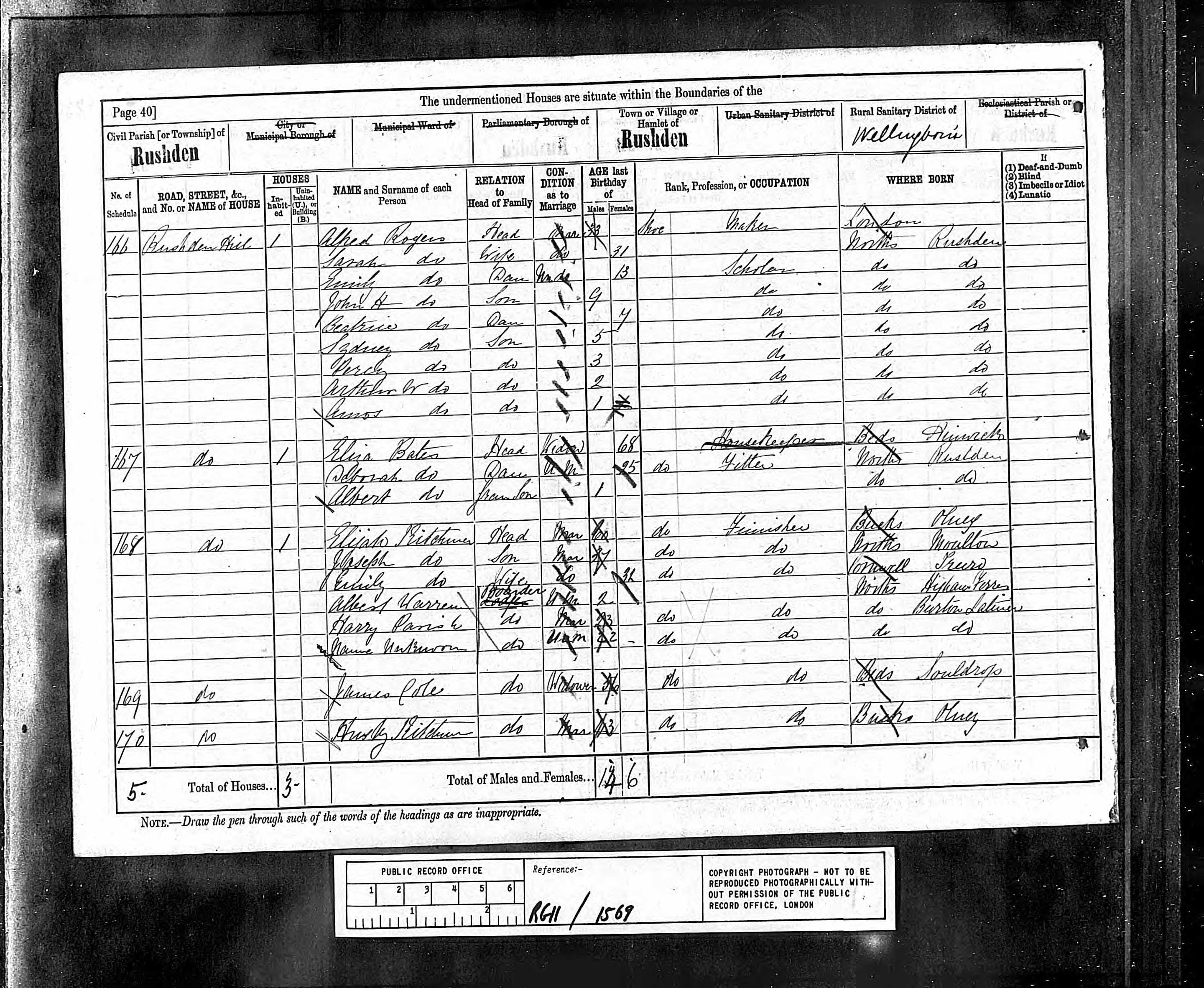 - was recorded in the census on 3 Apr, 1881 in Rushden Hill, Rushden, Northamptonshire, England