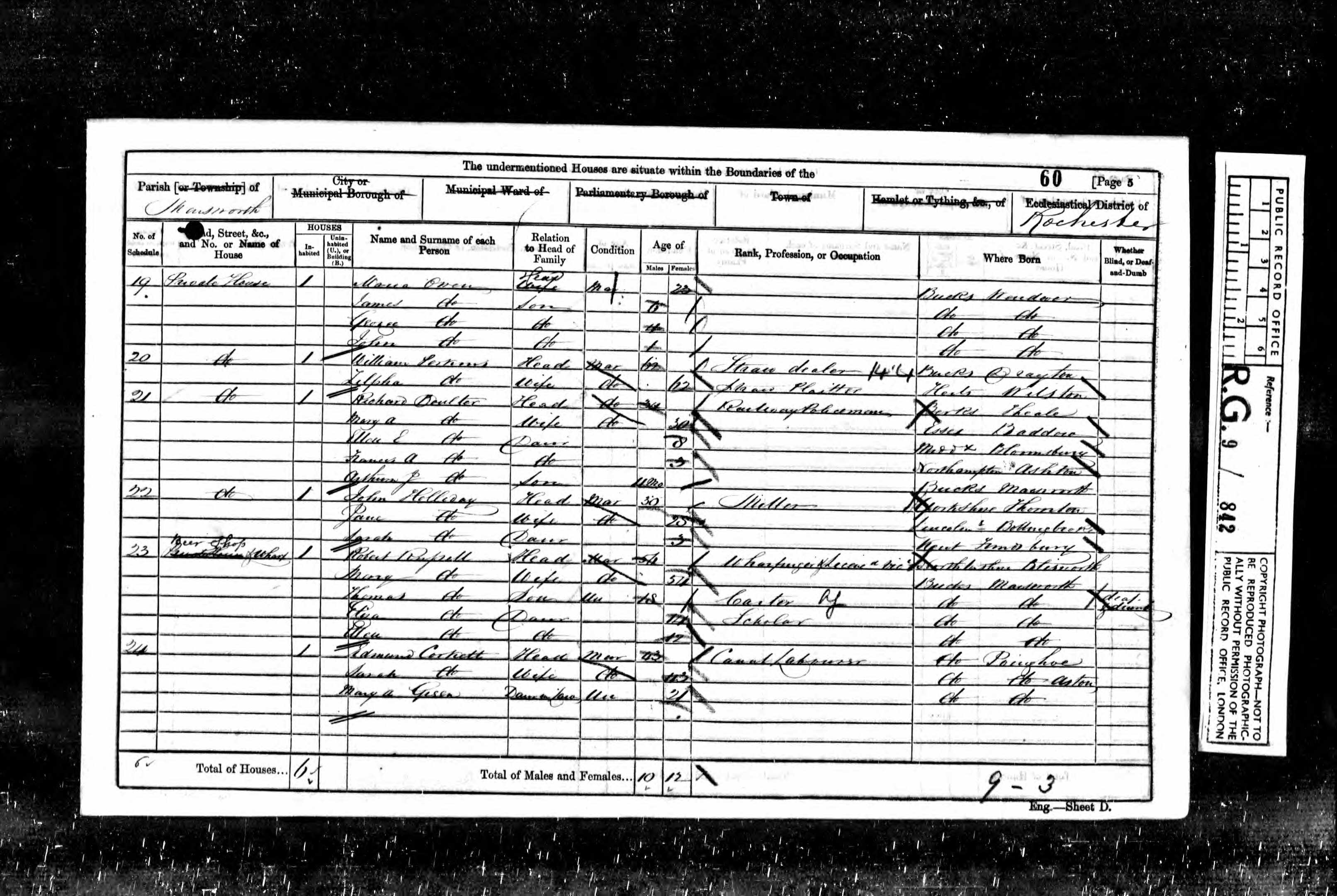 1861 England and Wales Census; Class RG9, Piece 842, Folio 60, Page 5, Schedule 20.