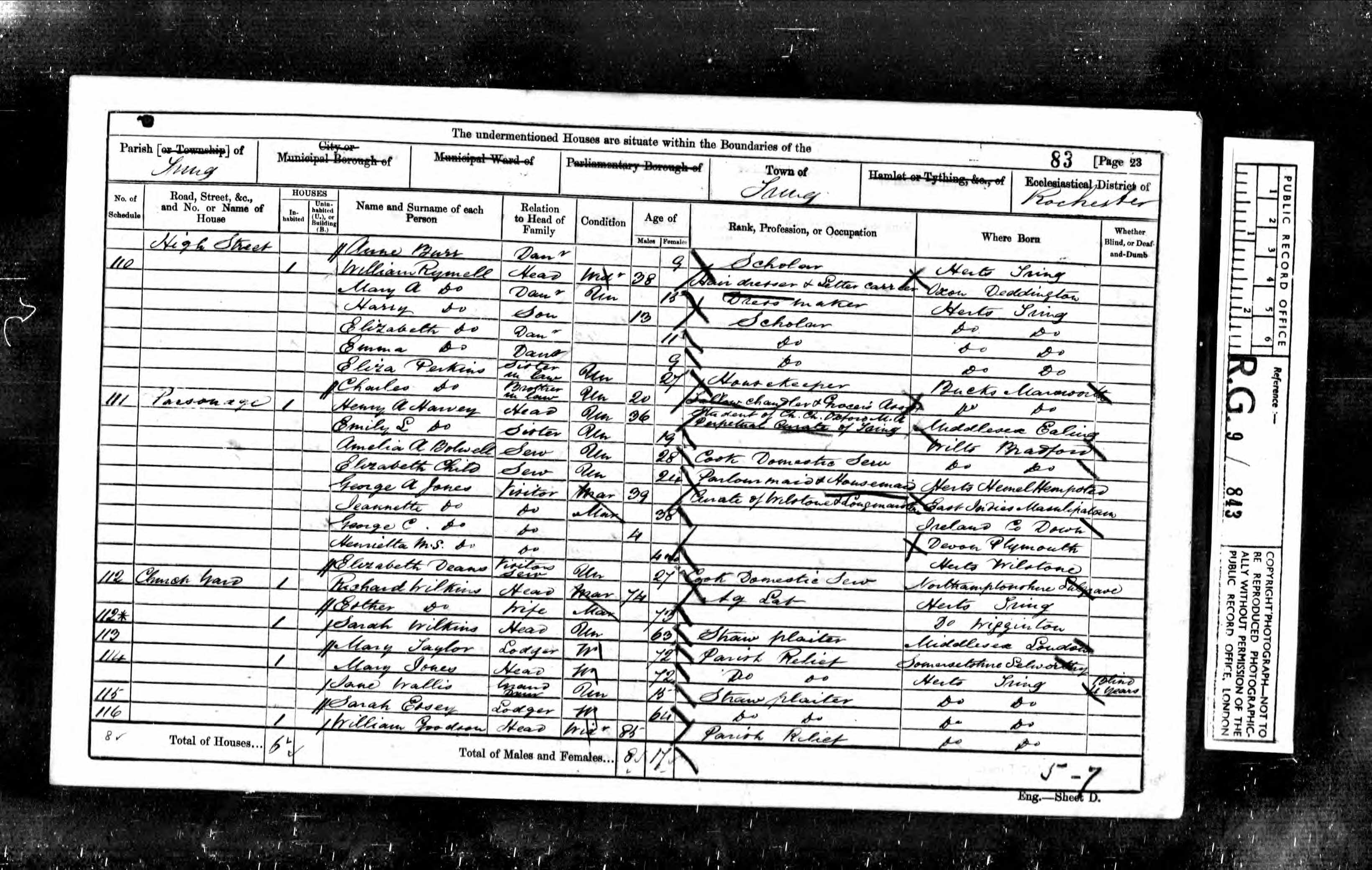 Class RG9, Piece 843, Folio 83, Page 23, Schedule 110
