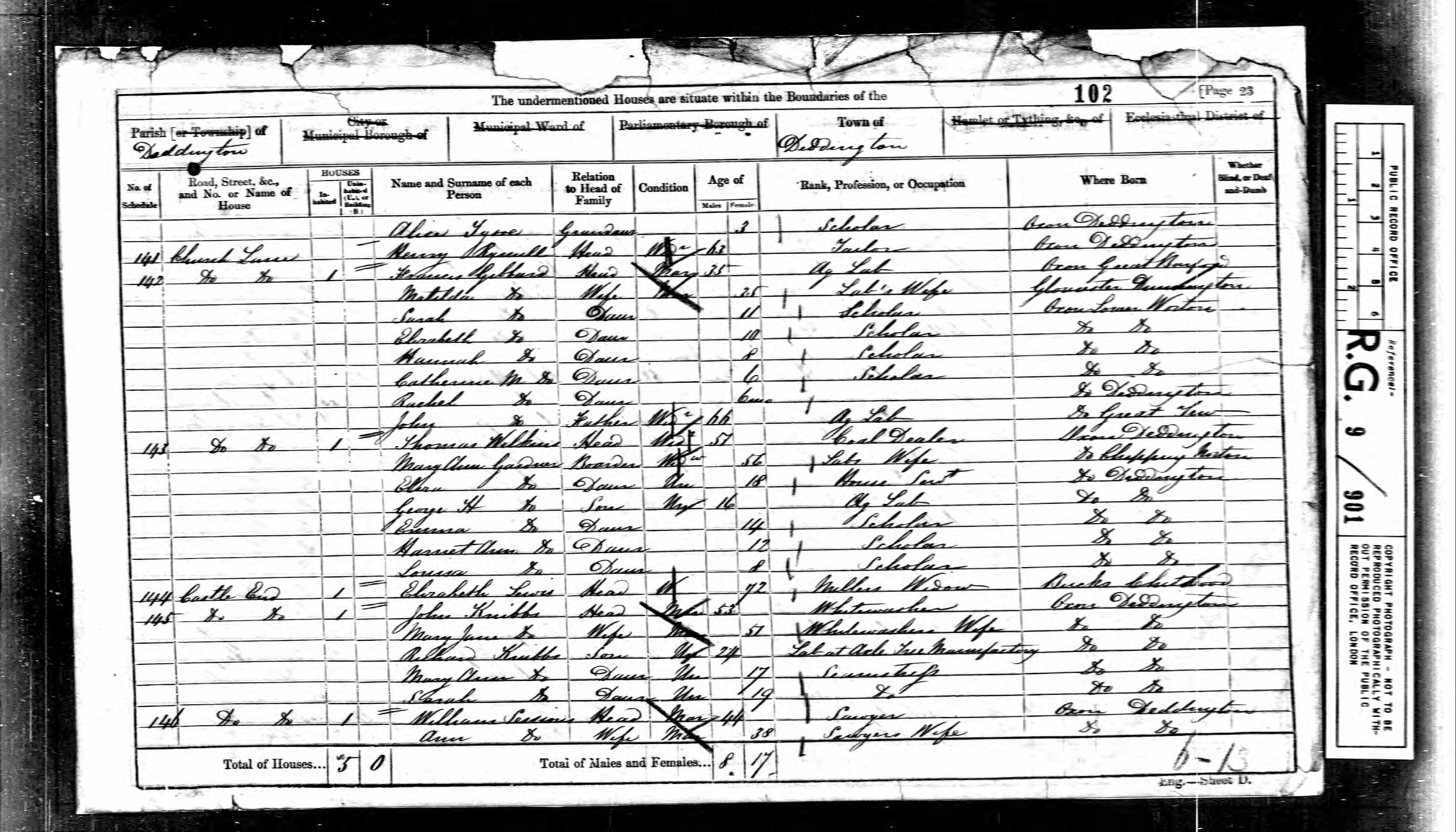 - was recorded in the census on 7 Apr, 1861 at Church Lane, Deddington, Oxfordshire, England