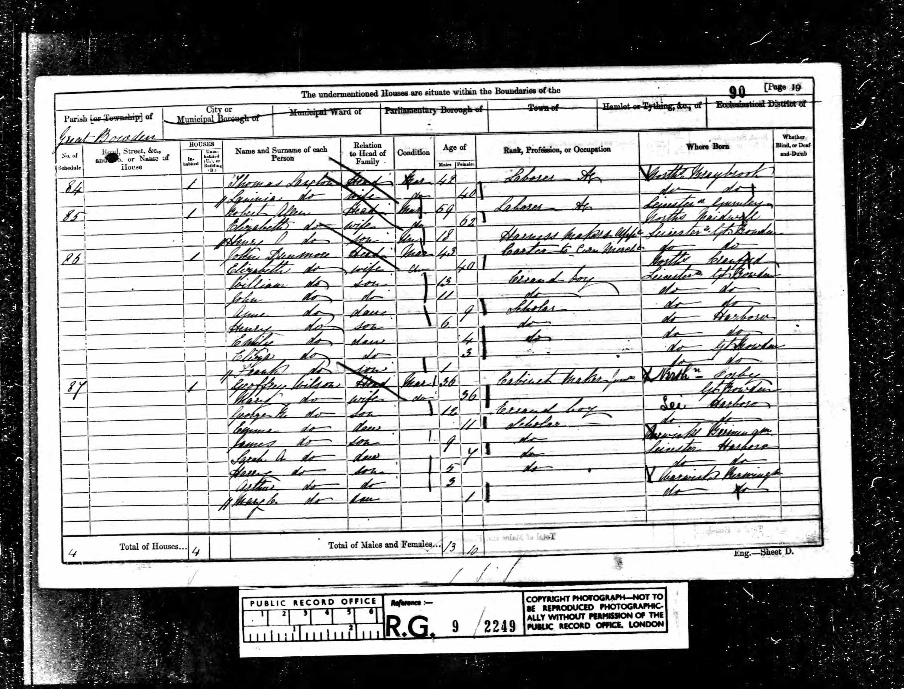 Class RG9, Piece 2249, Folio 90, Page 19, Schedule 86