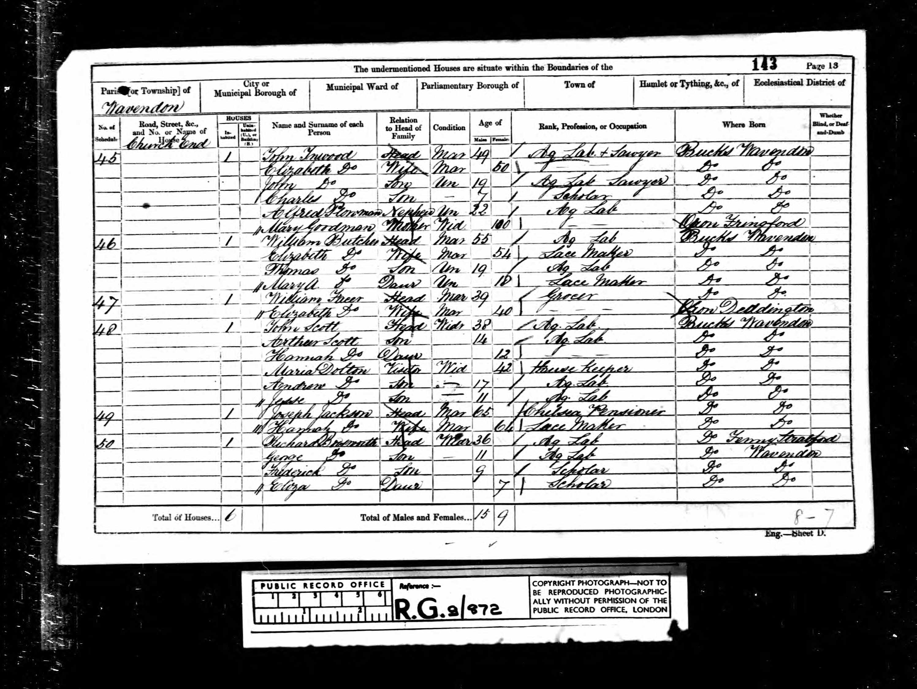 Class RG9, Piece 872, Folio 143, Page 13, Schedule 47