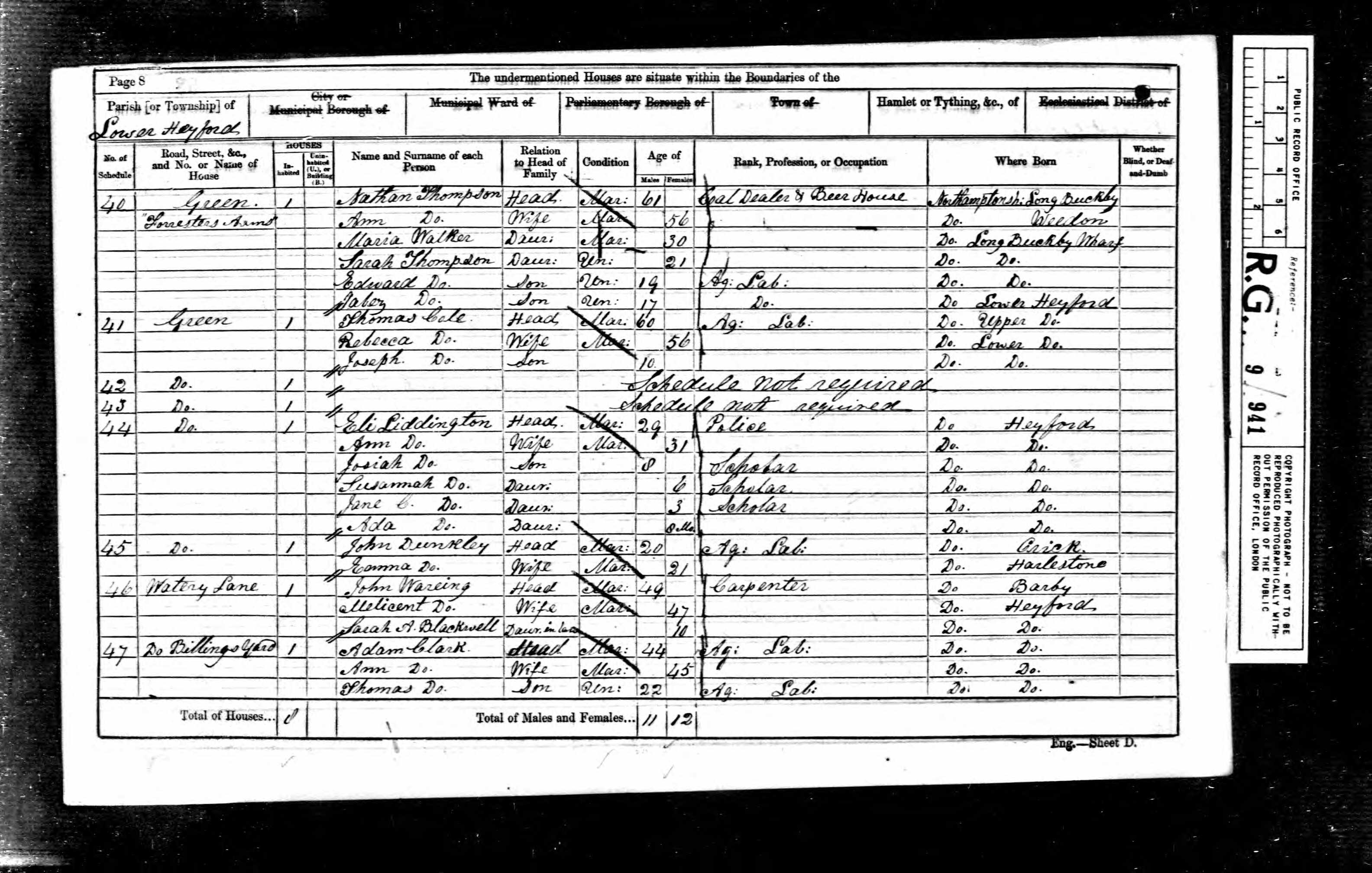 - was recorded in the census on 7 Apr, 1861 at Billings Yard, Watery Lane, Nether Heyford, Northamptonshire, England
