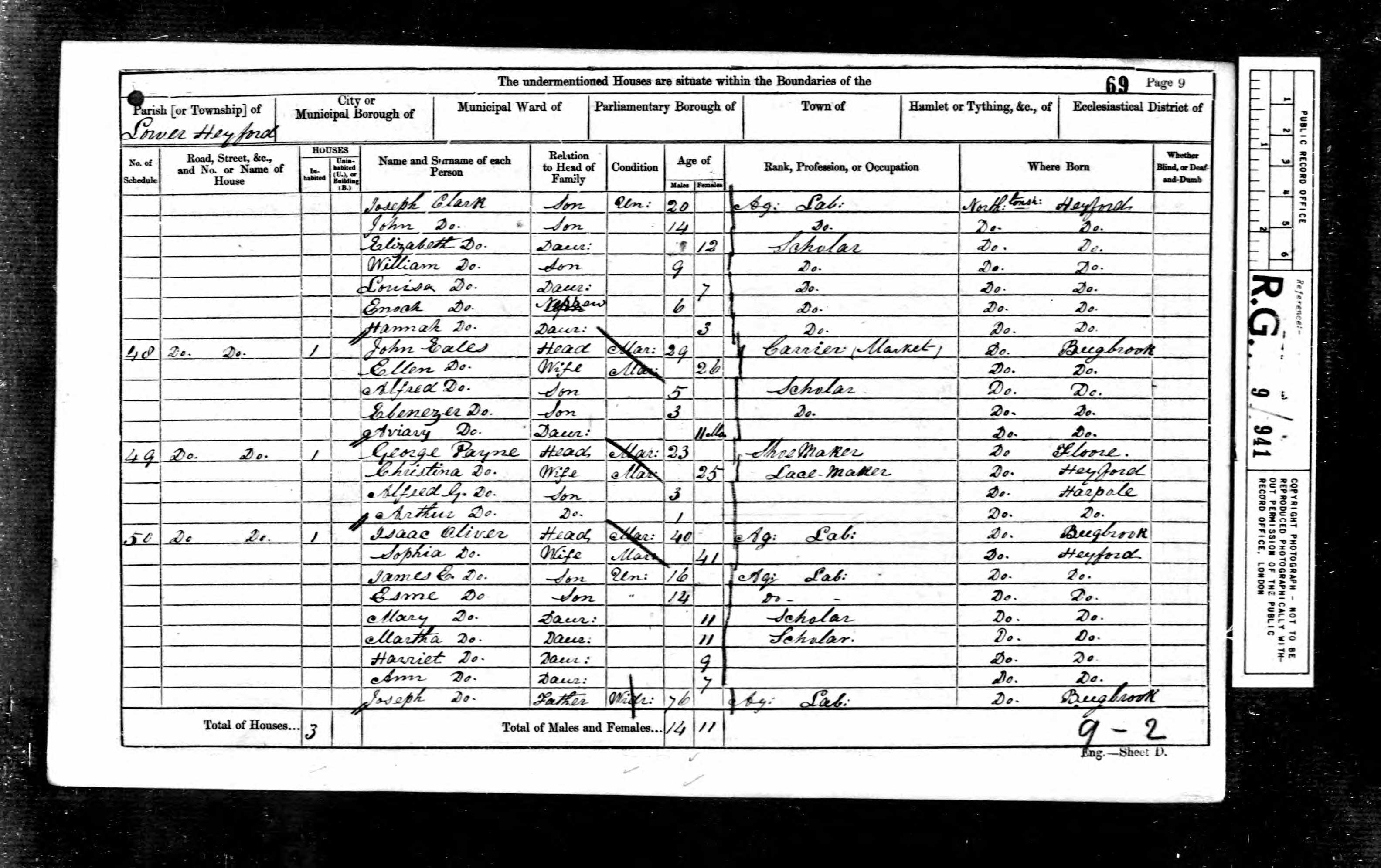 1861 England and Wales Census; Class RG9, Piece 941, Folios 68 and 69, Pages 8 and 9, Schedule 47.