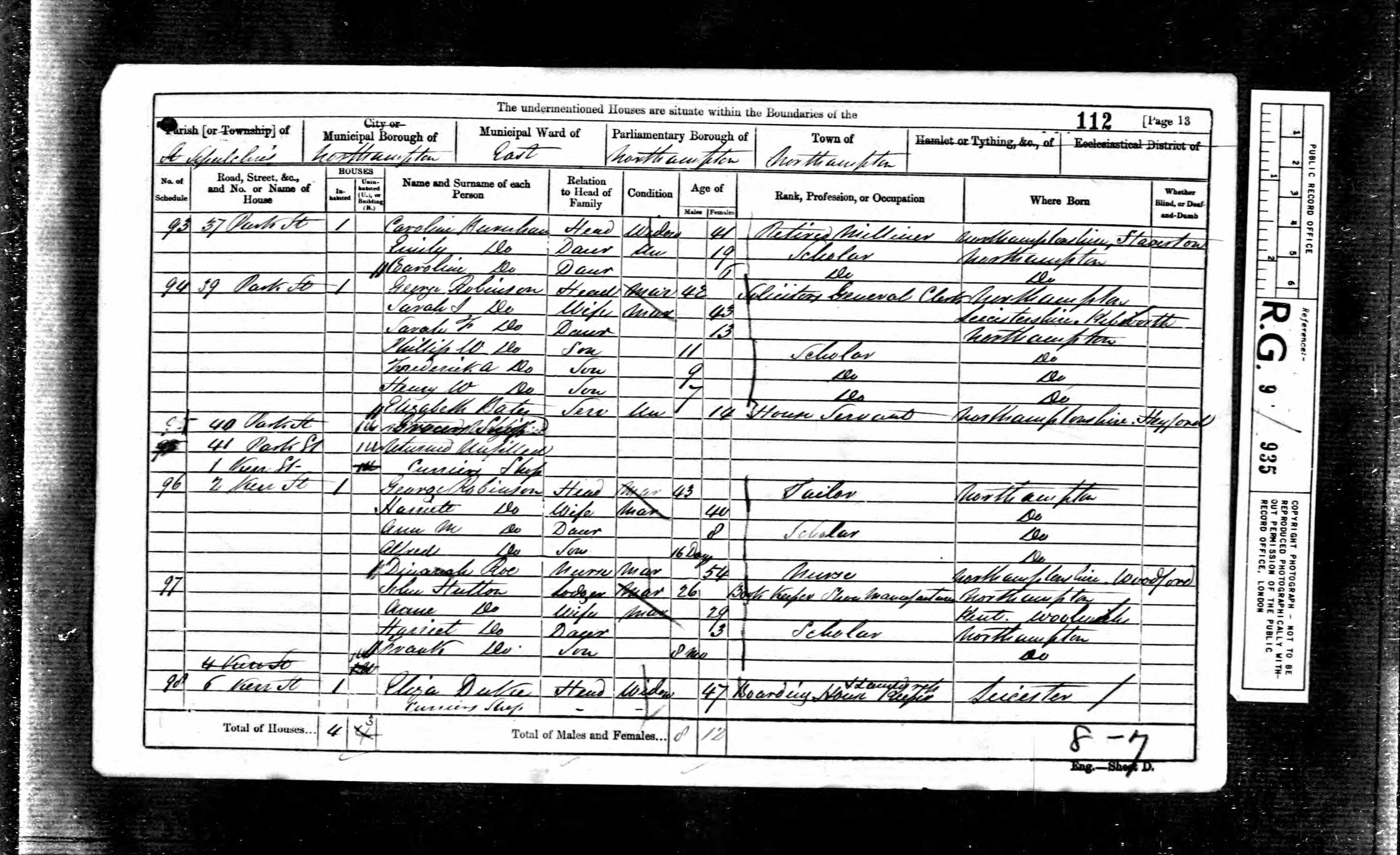 - was recorded in the census on 7 Apr, 1861 at 39 Park Street, Northampton Holy Sepulchre, Northampton, Northamptonshire, England