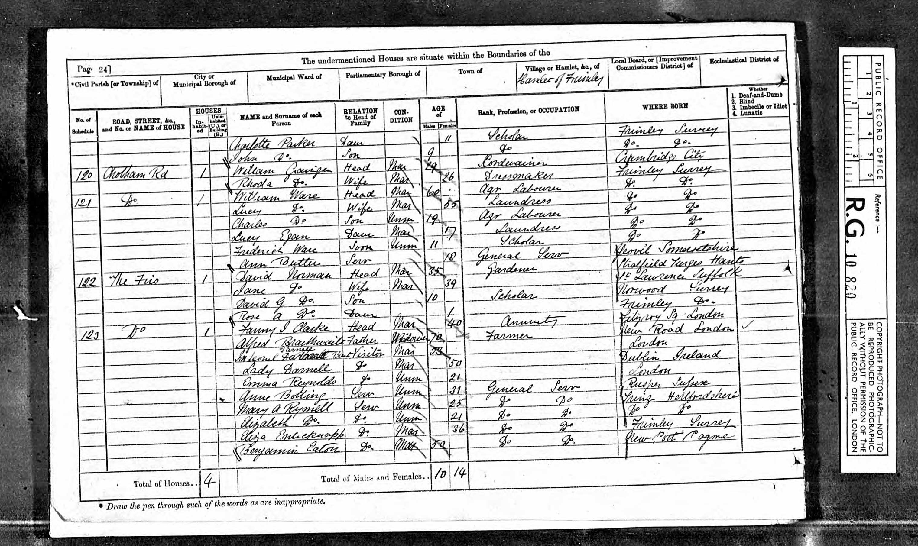 - was recorded in the census on 2 Apr, 1871 at The Firs, Frimley, Surrey, England