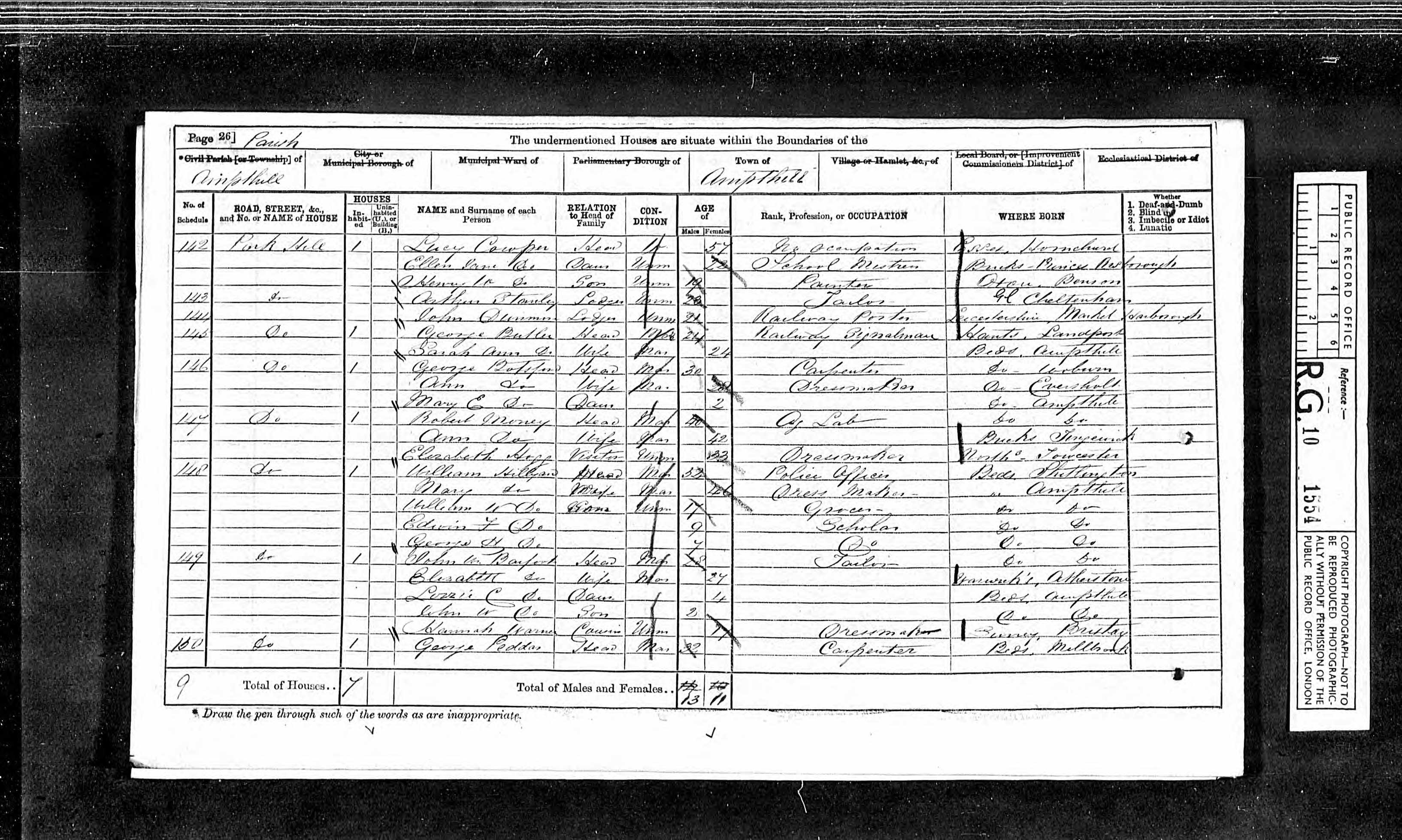 - was recorded in the census on 2 Apr, 1871 at Park Hill, Ampthill, Bedfordshire, England