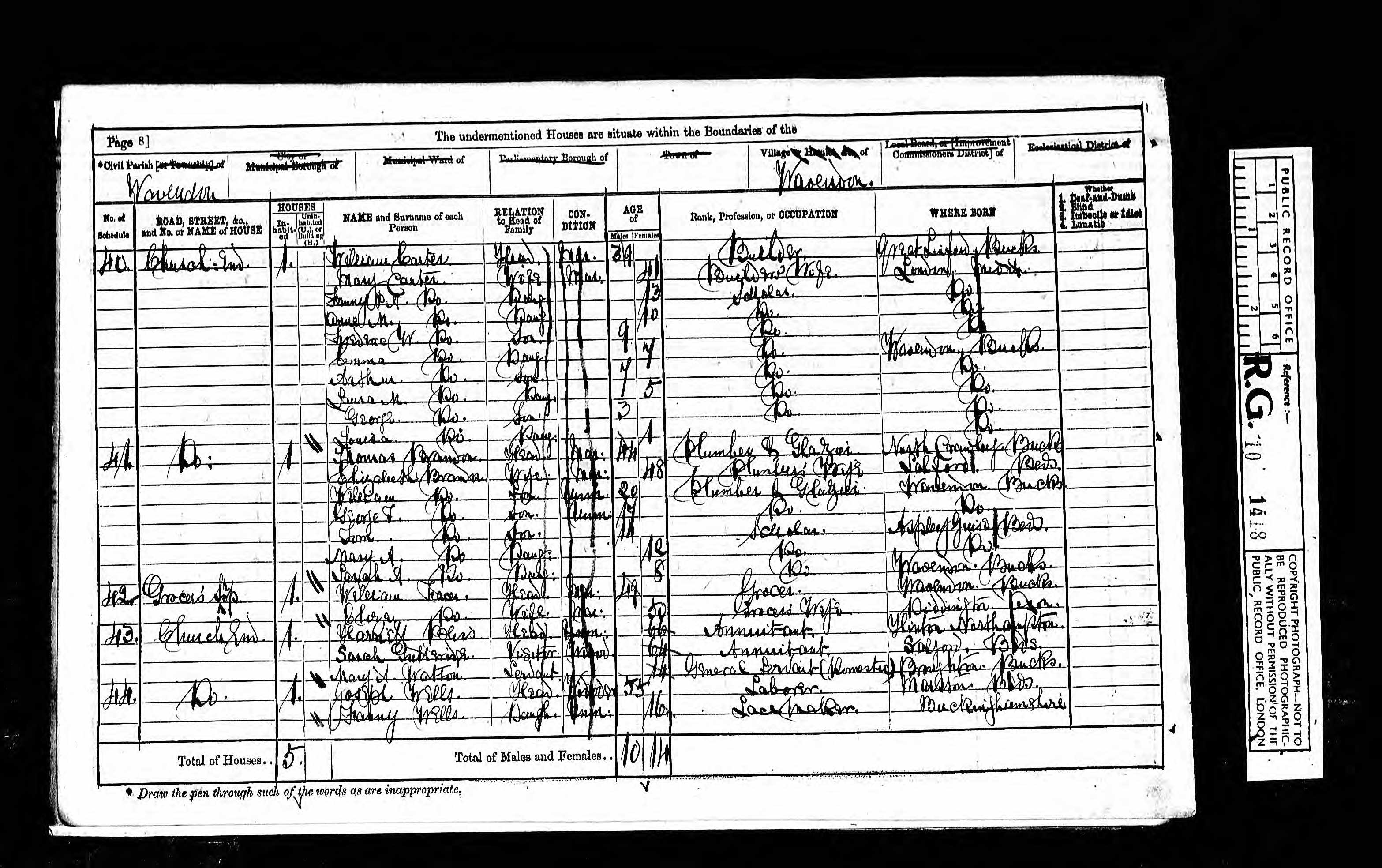 - was recorded in the census on 2 Apr, 1871 at Grocer's Shop, Church End, Wavendon, Buckinghamshire, England