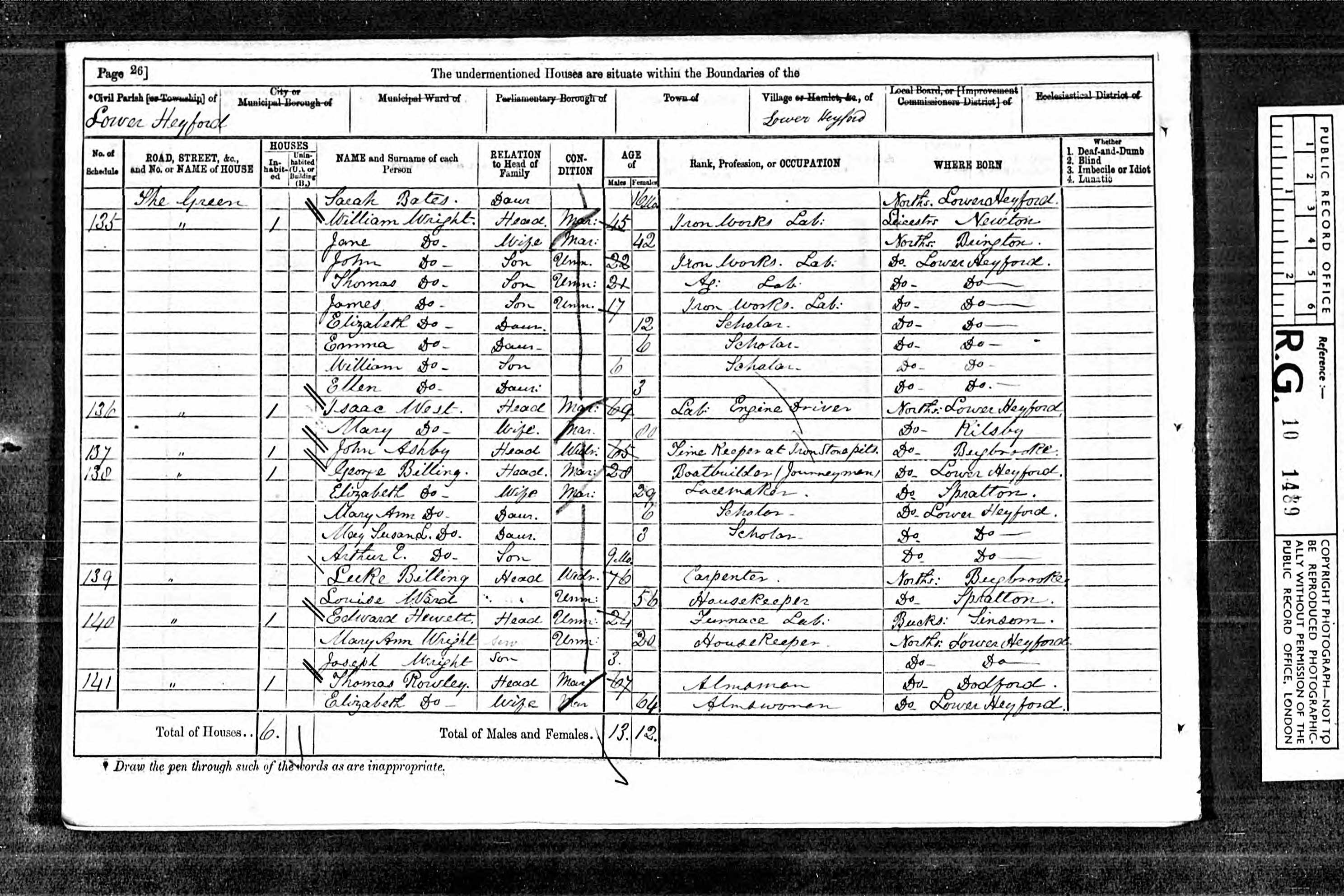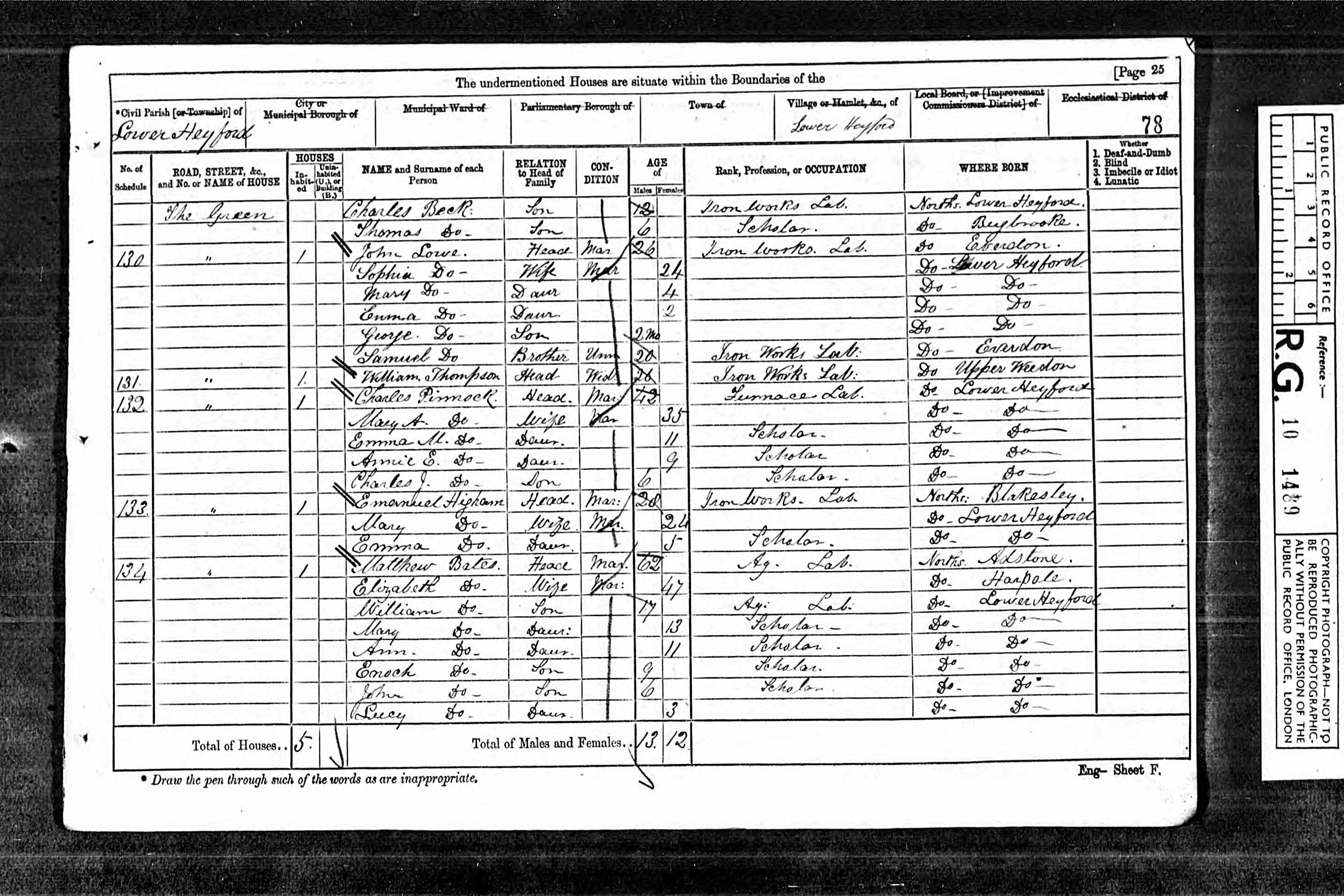 - was recorded in the census on 2 Apr, 1871 at The Green, Nether Heyford, Northamptonshire, England