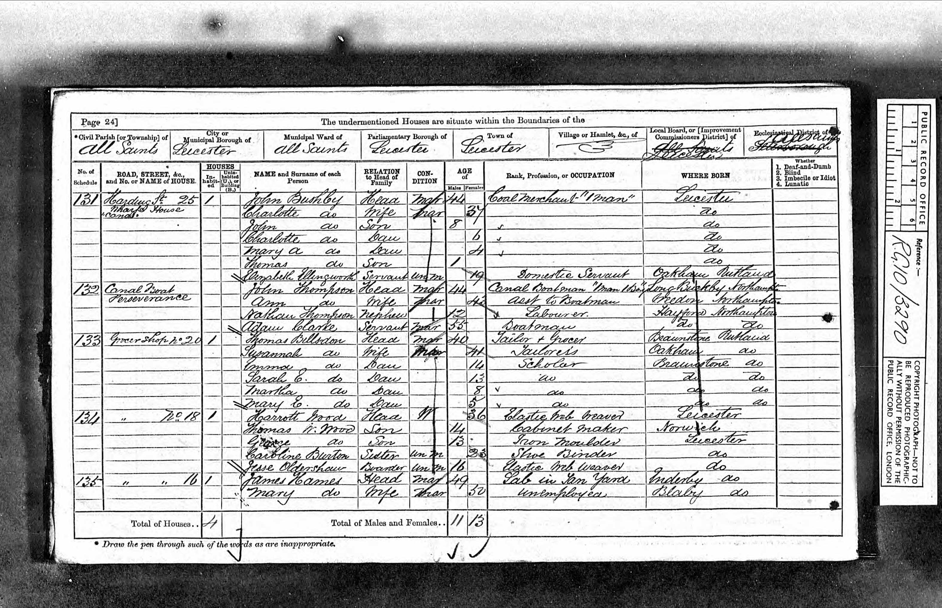1871 England and Wales Census; Class RG10, Piece 3290, Folio 15, Page 24, Schedule 132.