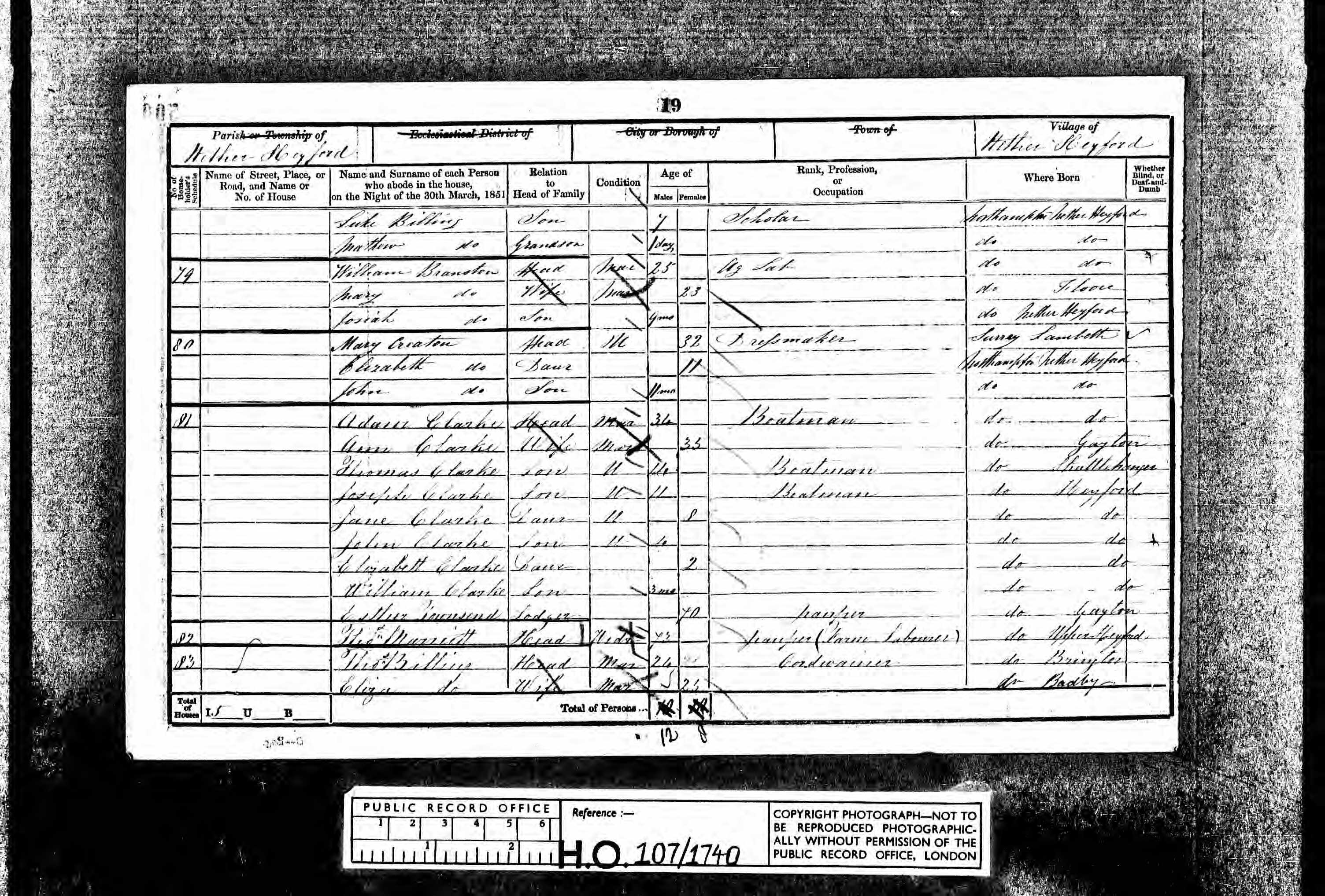 - was recorded in the census on 30 Mar, 1851 in Nether Heyford, Northamptonshire, England