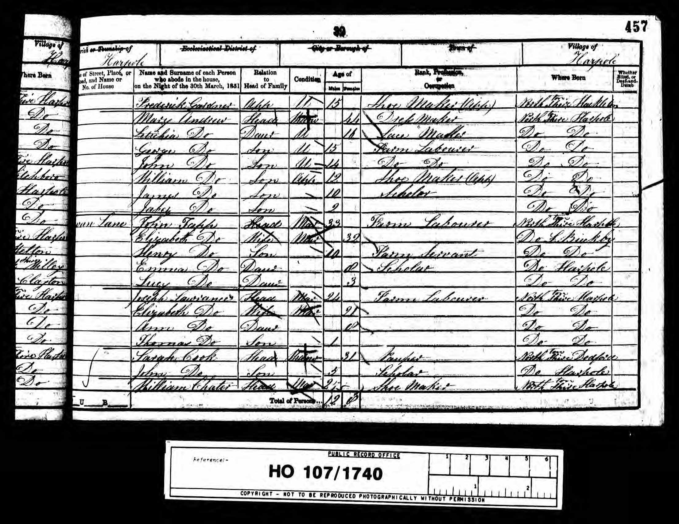 1851 England and Wales Census; Class HO107, Piece 1740, Folio 457, Page 32, Schedule 147.