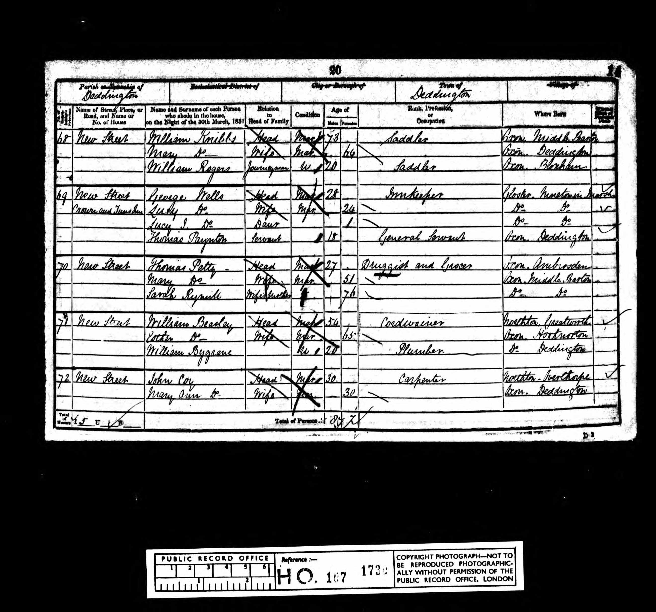 - was recorded in the census on 30 Mar, 1851 at New Street, Deddington, Oxfordshire, England