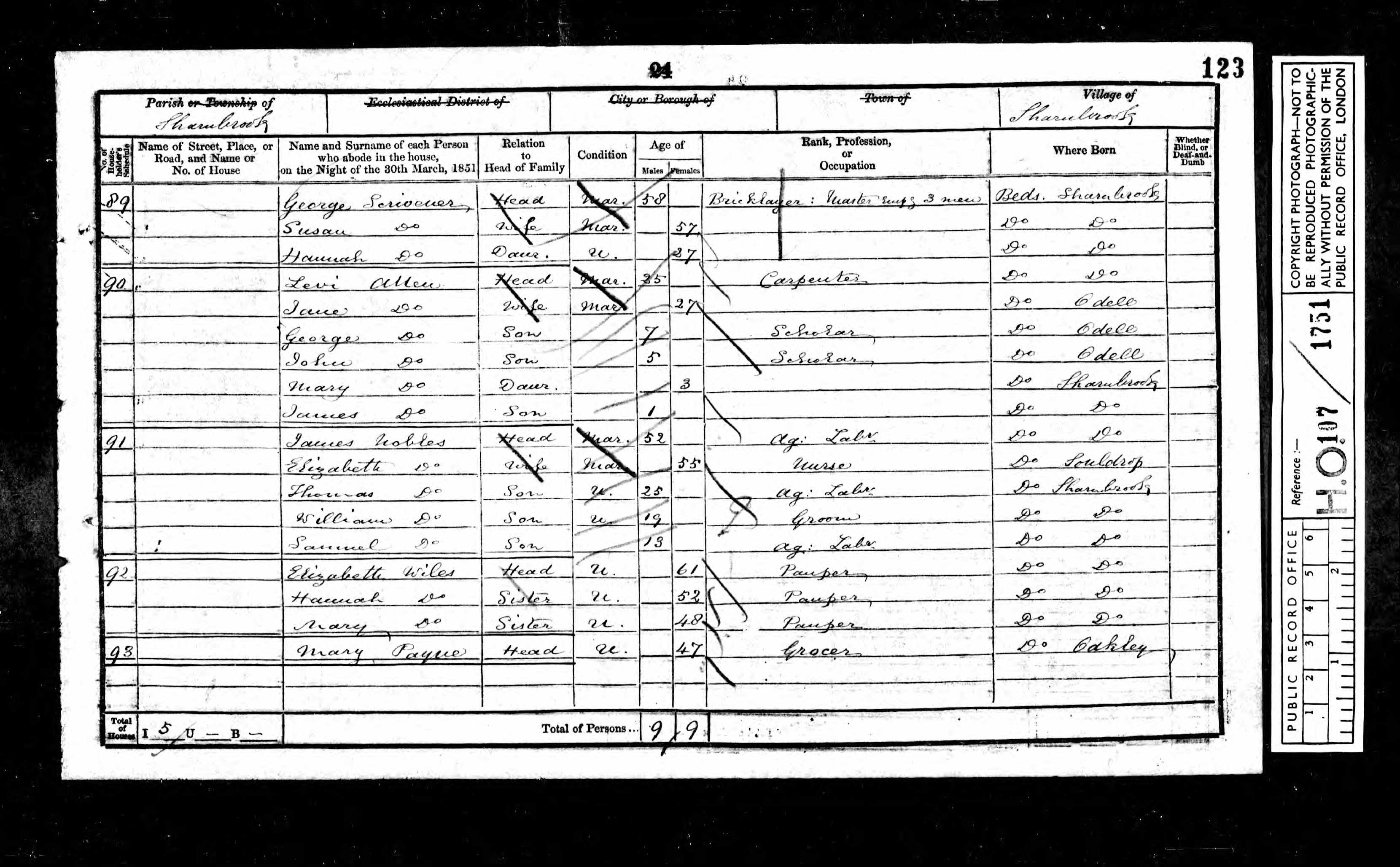 1851 England and Wales Census; Class HO107, Piece 1751, Folio 123, Page 24, Schedule 91.