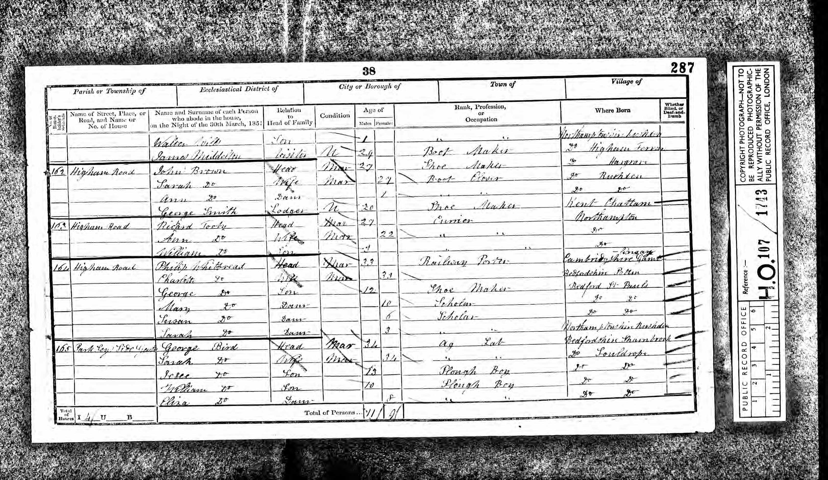 1851 England and Wales Census; Class HO107, Piece 1743, Folio 287, Page 38, Schedule 164.