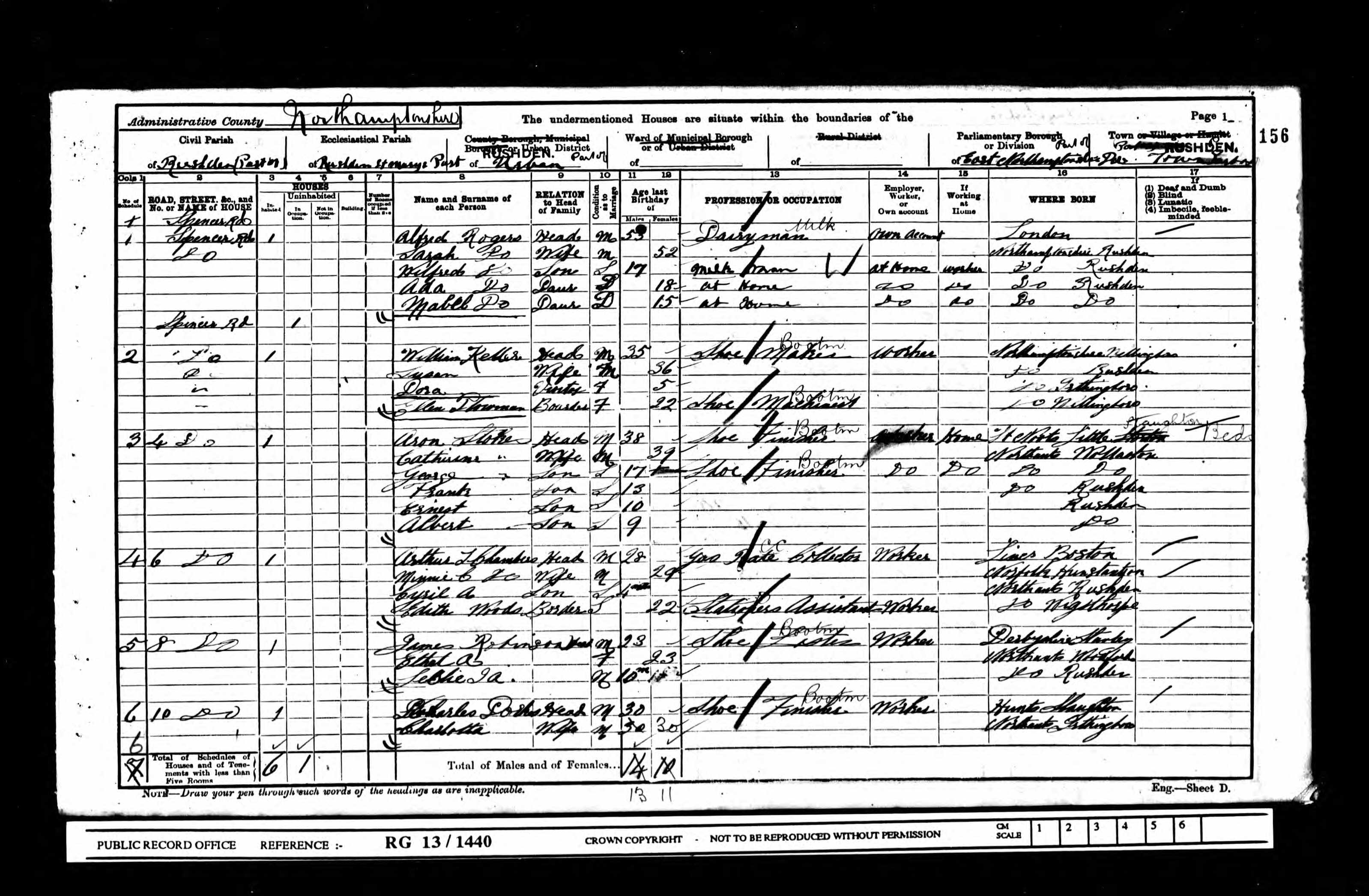 1901 England and Wales Census; Class RG13, Piece 1440, Folio 156, Page 1, Schedule 1.