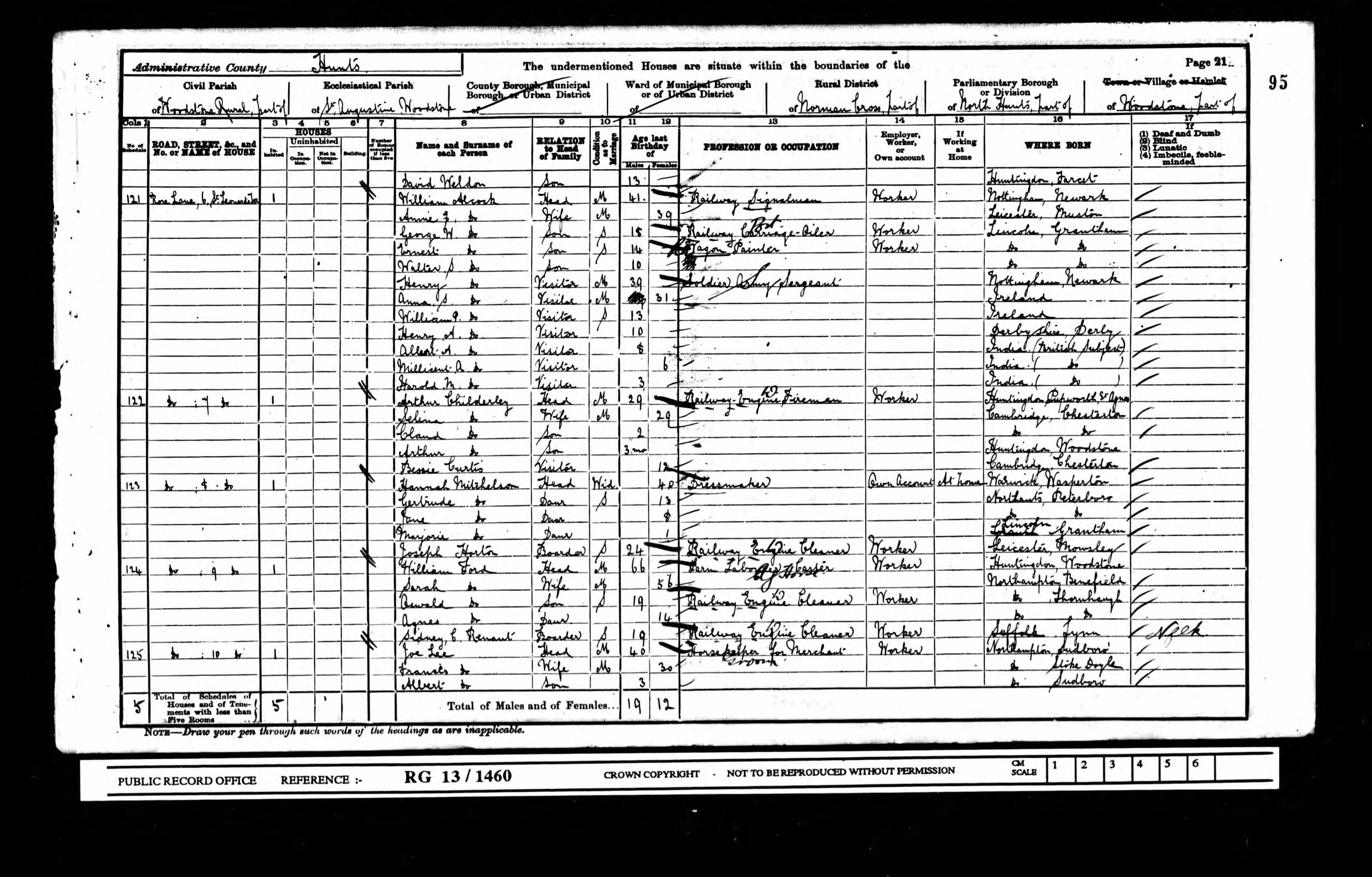 1901 England and Wales Census; Class RG13, Piece 1460, Folio 95, Page 21, Schedule 1.