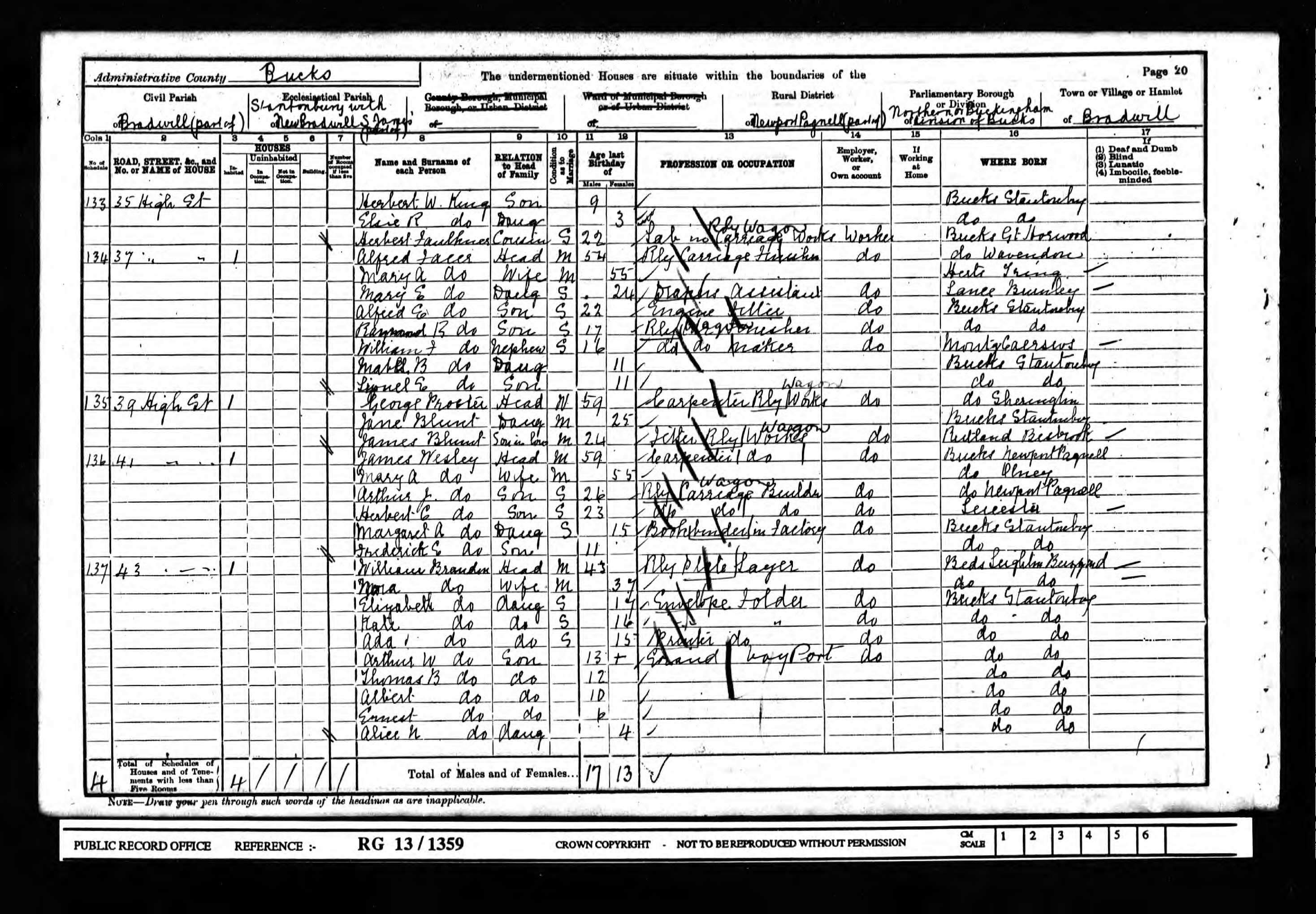 Class RG13, Piece 1359, Folio 26, Page 20, Schedule 134
