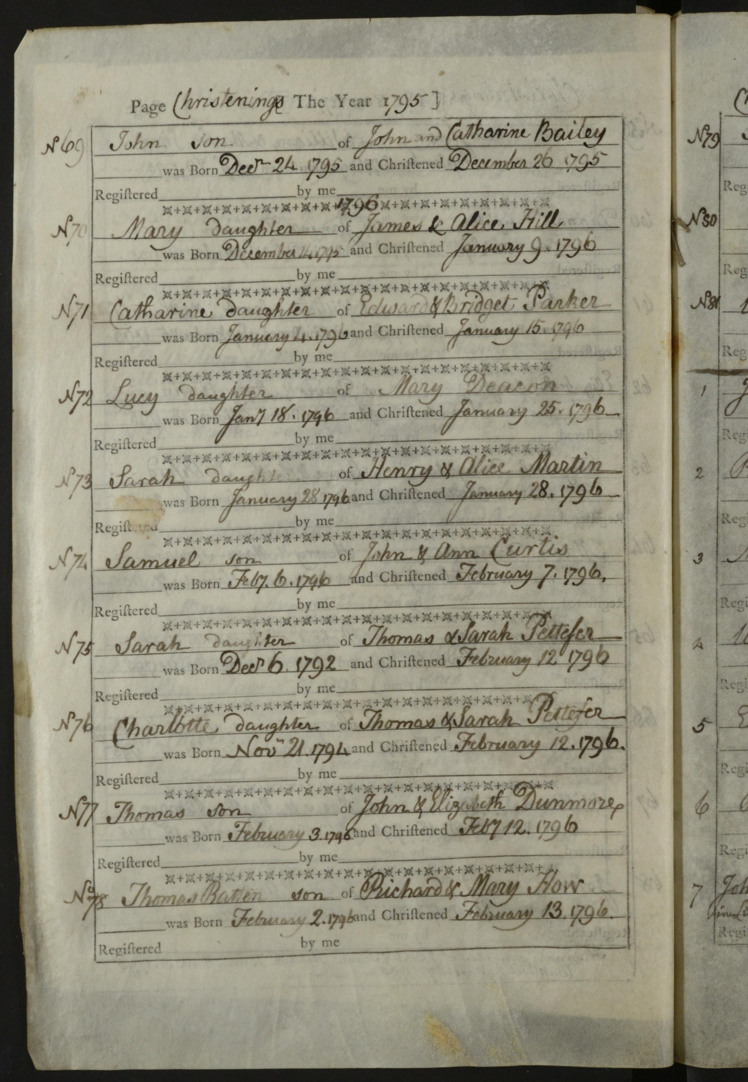 Baptism entry for Thomas Dunmore, 12 Feb 1796, No 77