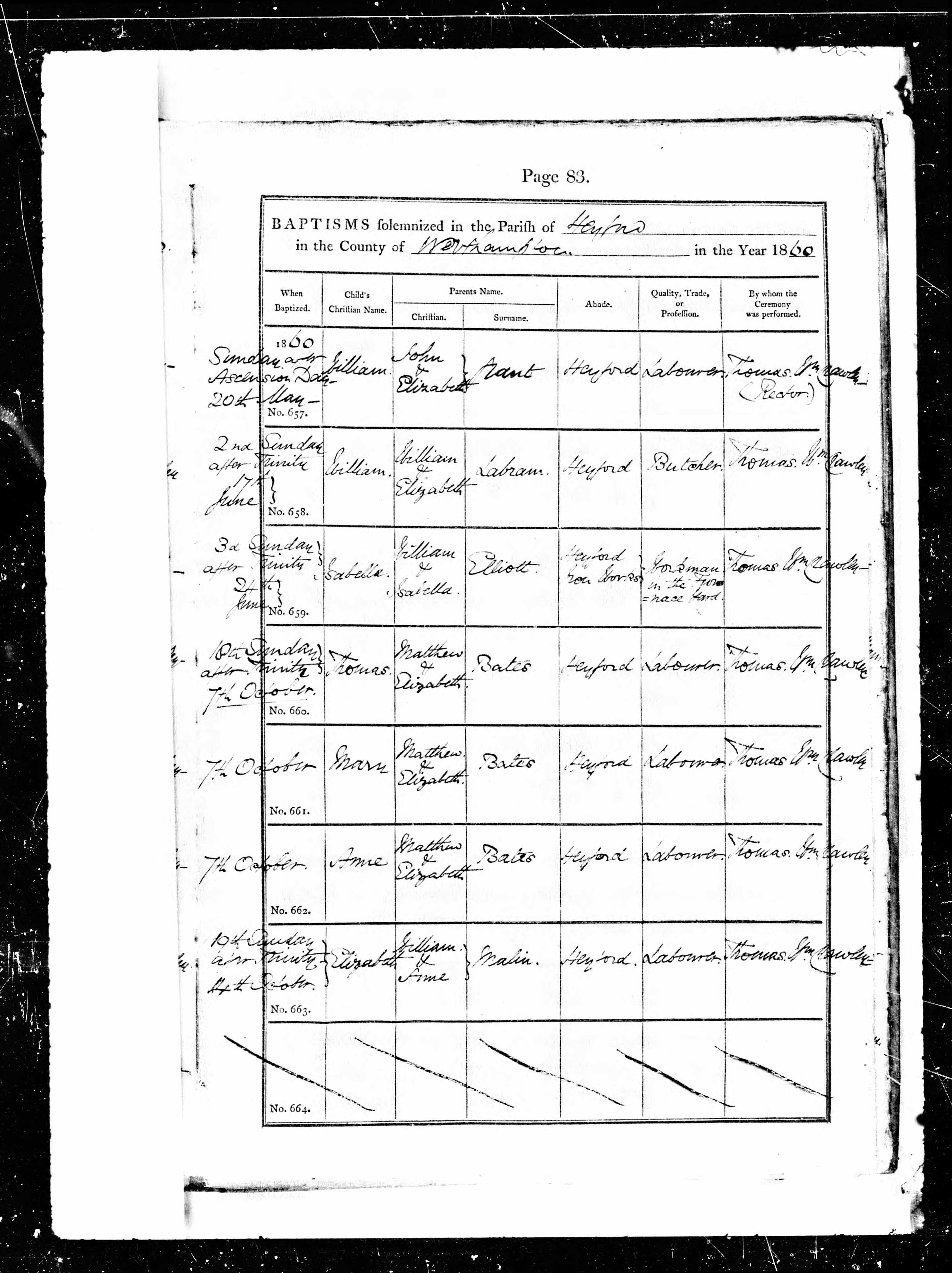 - Matthew Bates★ was resident on 7 Oct, 1860 in Heyford, Northamptonshire, England