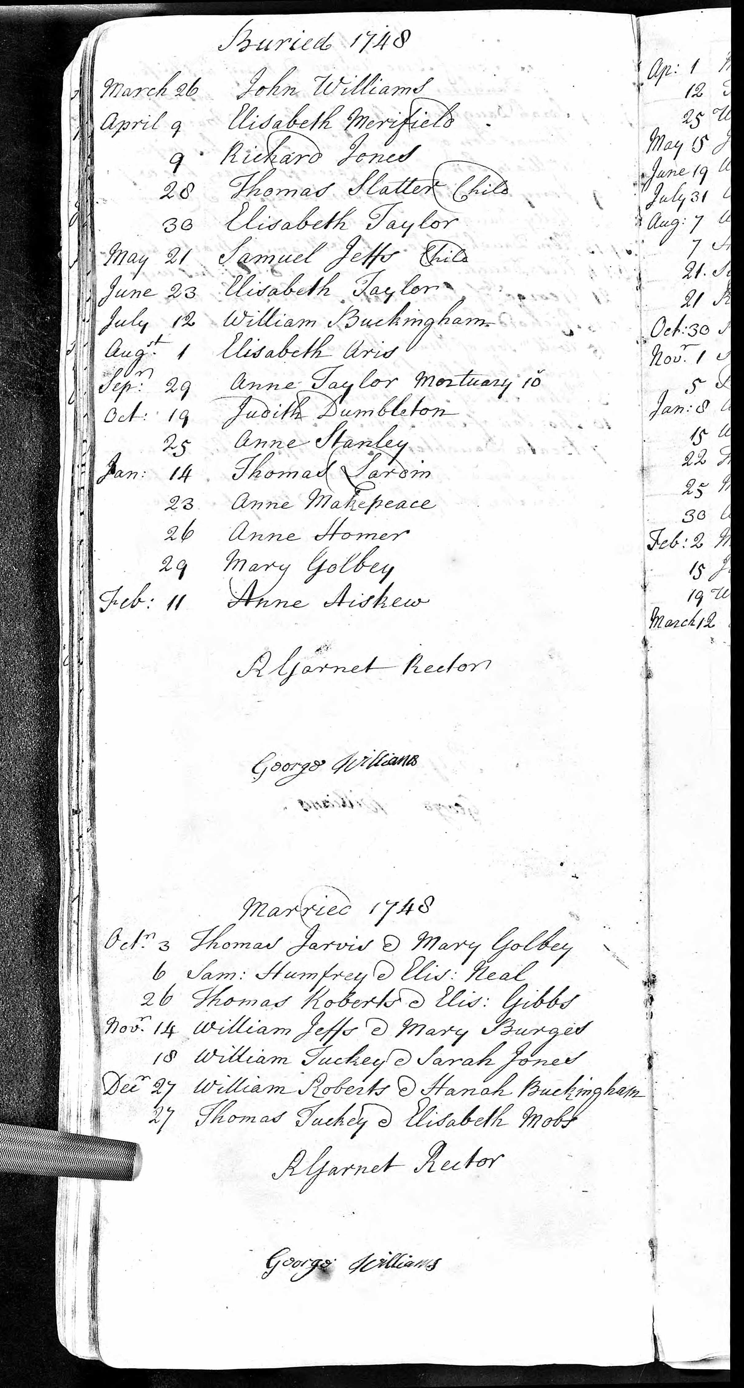 Parish Registers of All Saints, Middleton Cheney, Northamptonshire; Marriage entry for Thomas Jarvis and Mary Golbey, 3 Oct 1748.