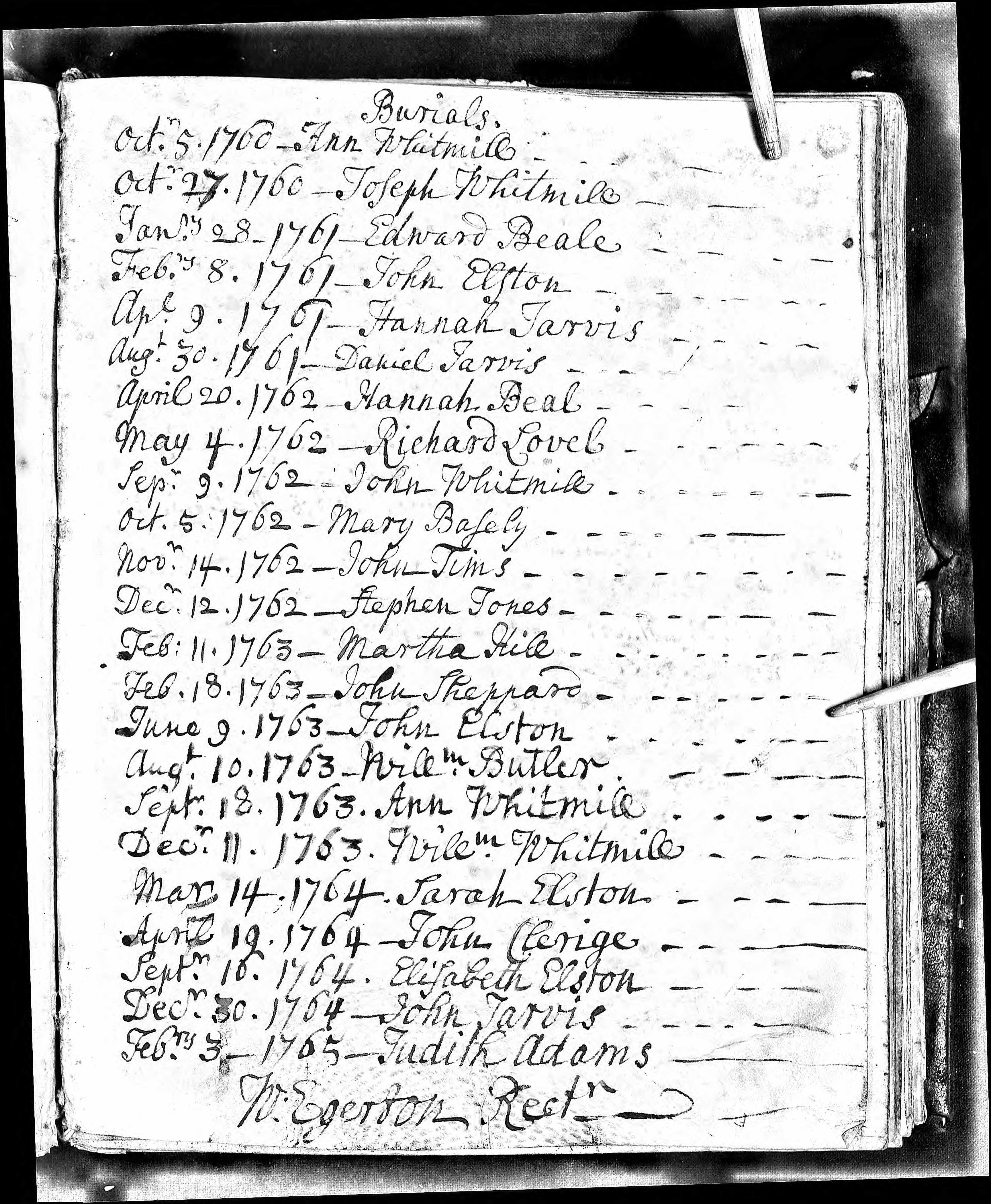 Burial entry for John Jarvis, 30 Dec 1764