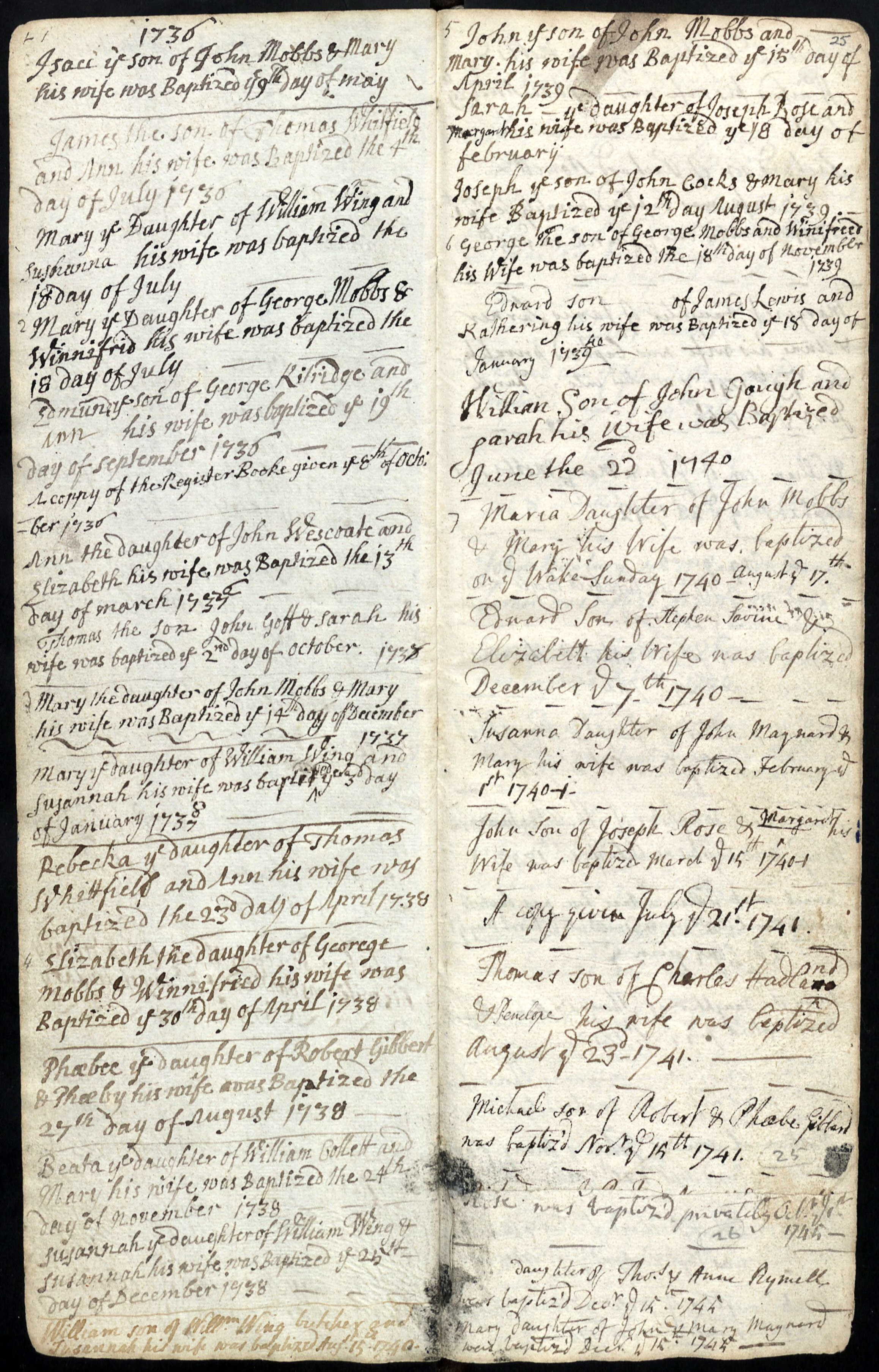 BaptismOfJohnRose1740NorthAston