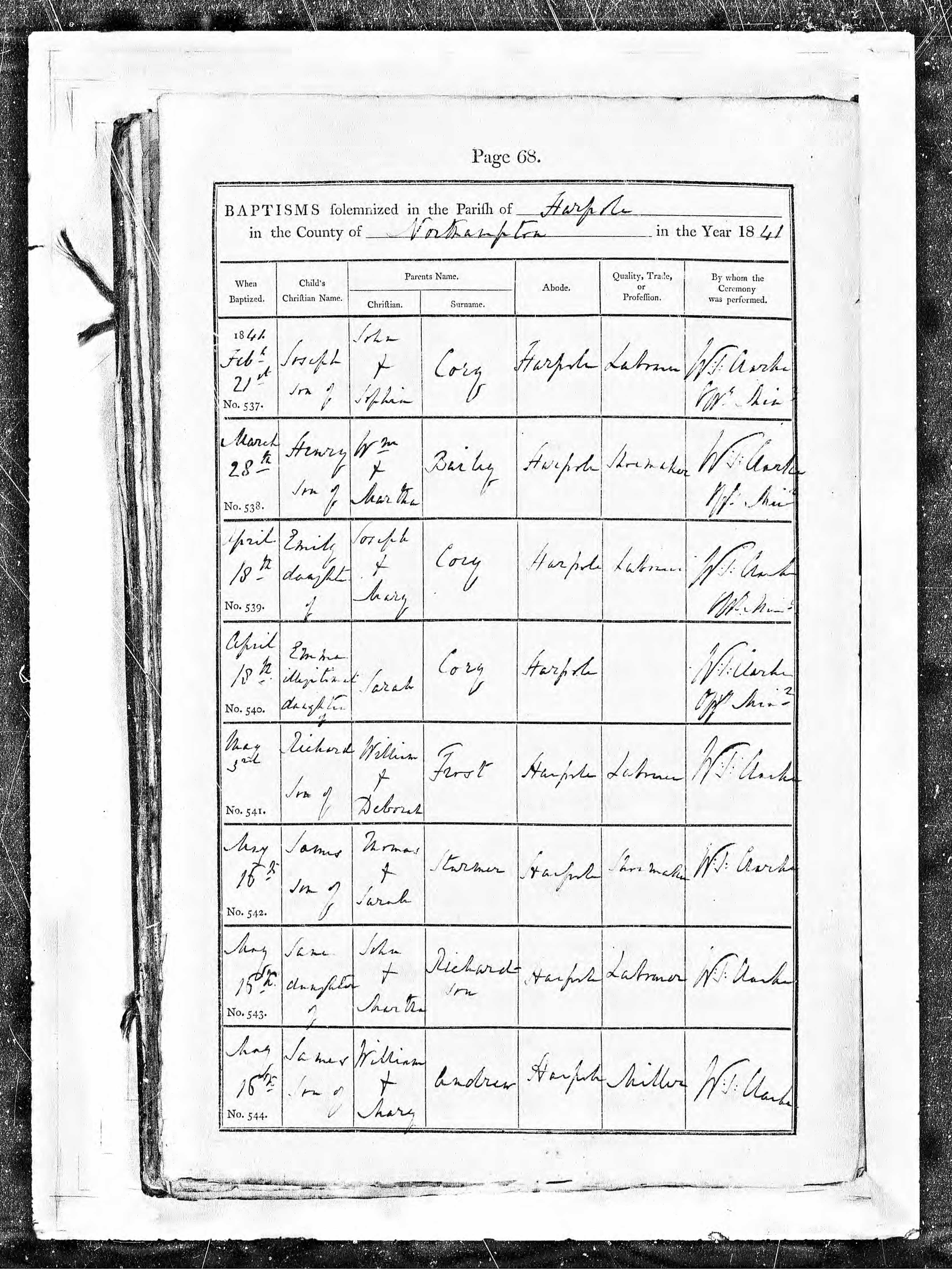 - James Andrews was baptised on 16 May, 1837 in Harpole, Northamptonshire, England