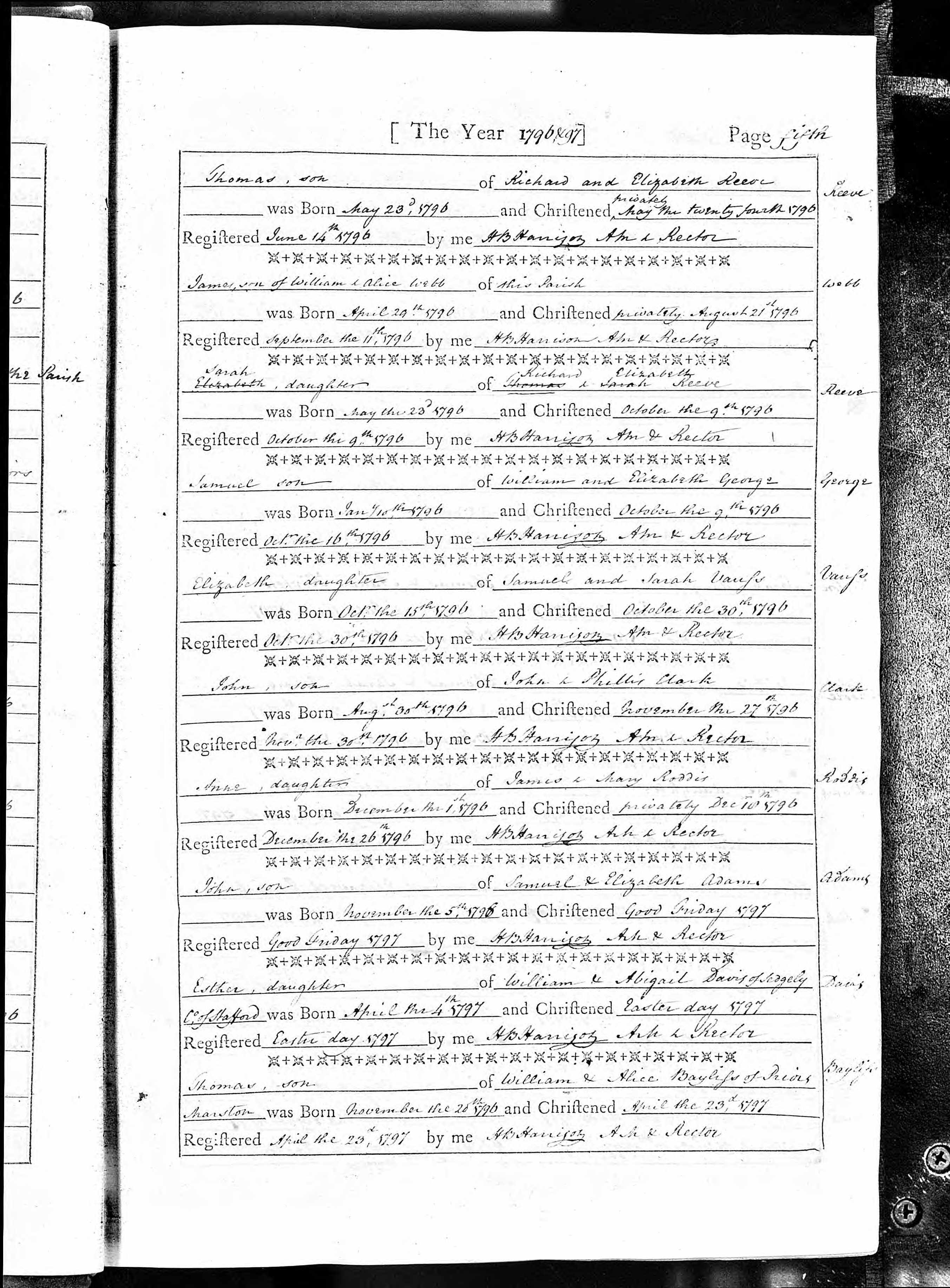 Baptism entry for John Clark, 27 Nov 1796, Page fifth