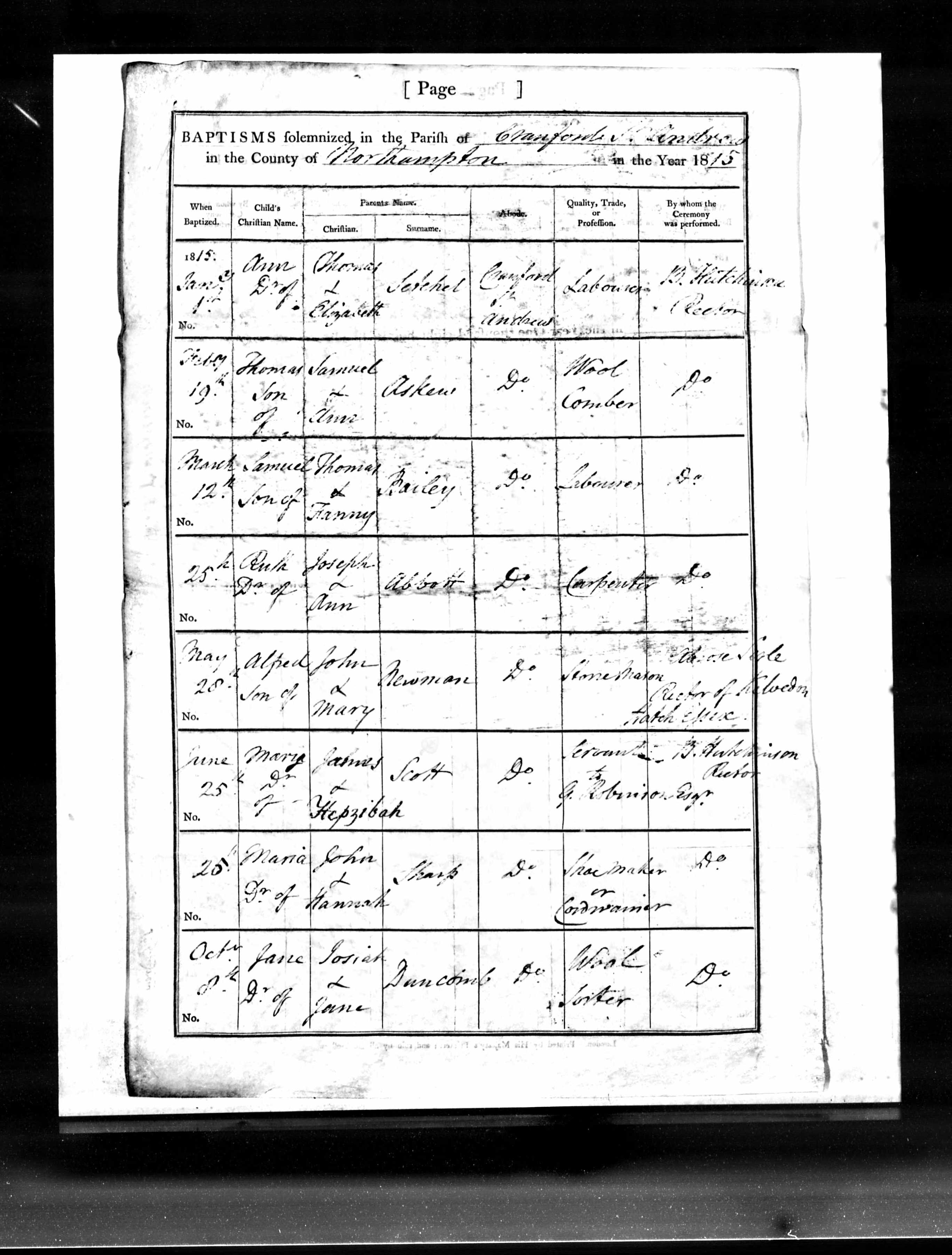 - Hannah Smith★ was resident on 25 Jun, 1815 in Cranford St. Andrew, Northamptonshire, England