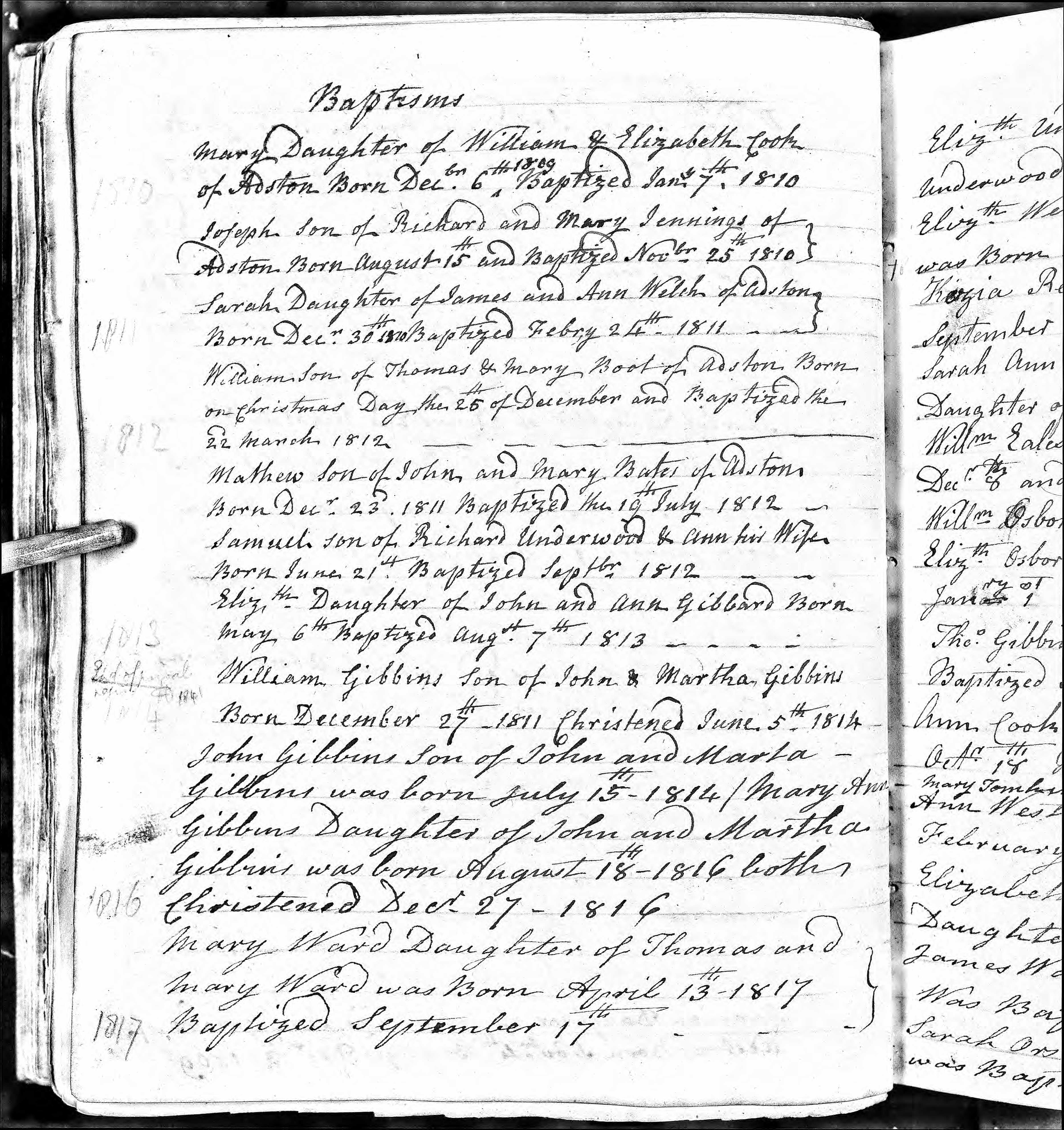Mathew son of John and Mary Bates of Adstone, born 23 Dec 1811