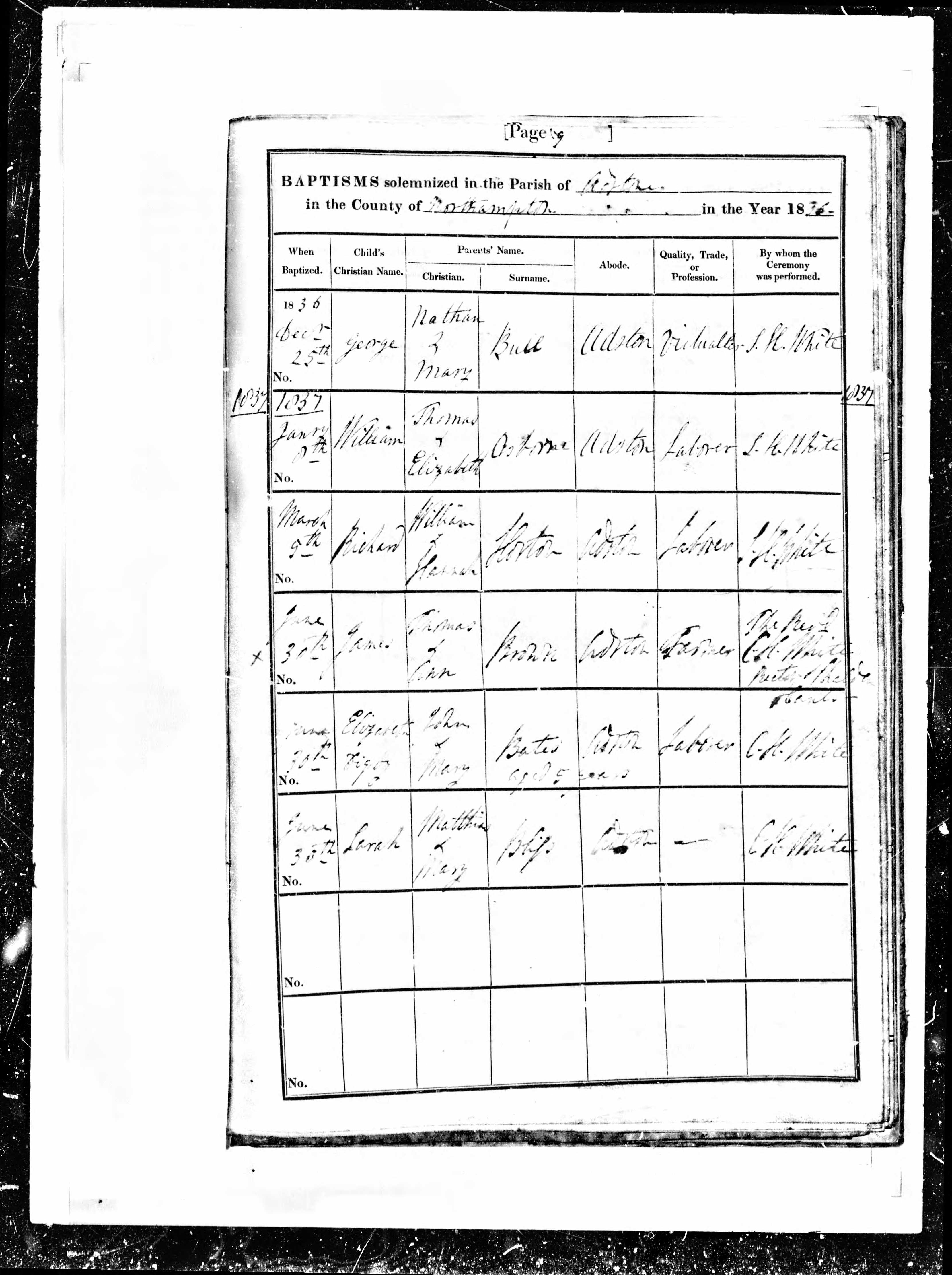 - John Bates★ was resident on 30 Jun, 1837 in Adstone, Northamptonshire, England