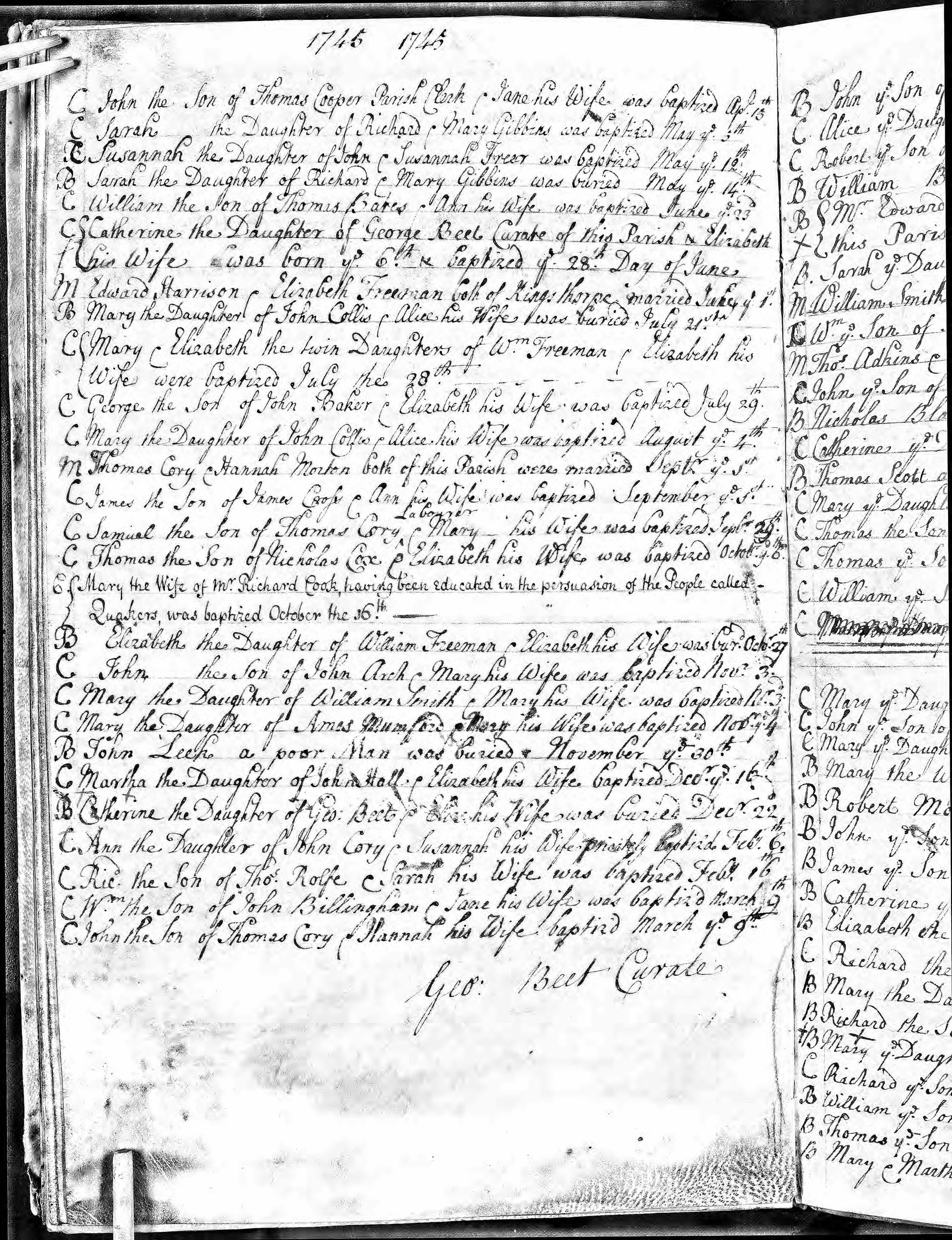 Baptism entry for Wm Billingham, 9 Mar 1745