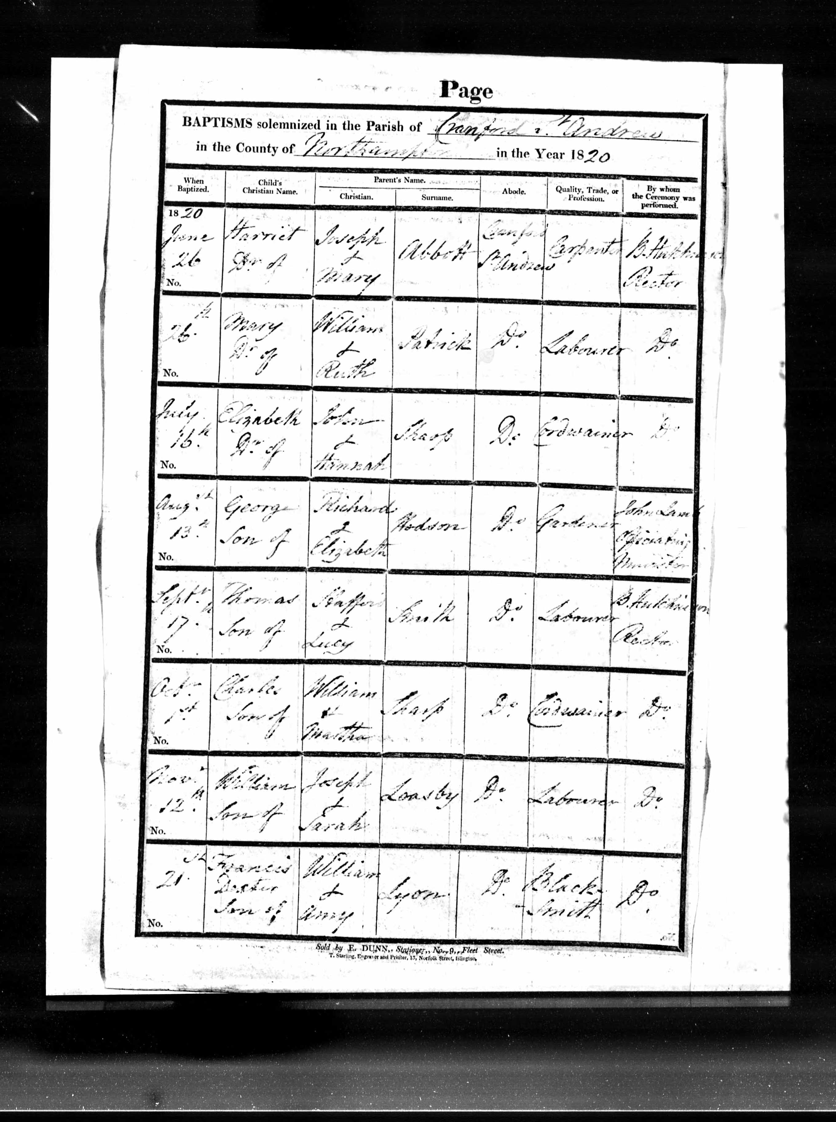 - John Sharp★ had occupation recorded as cordwainer on 16 Jul, 1820