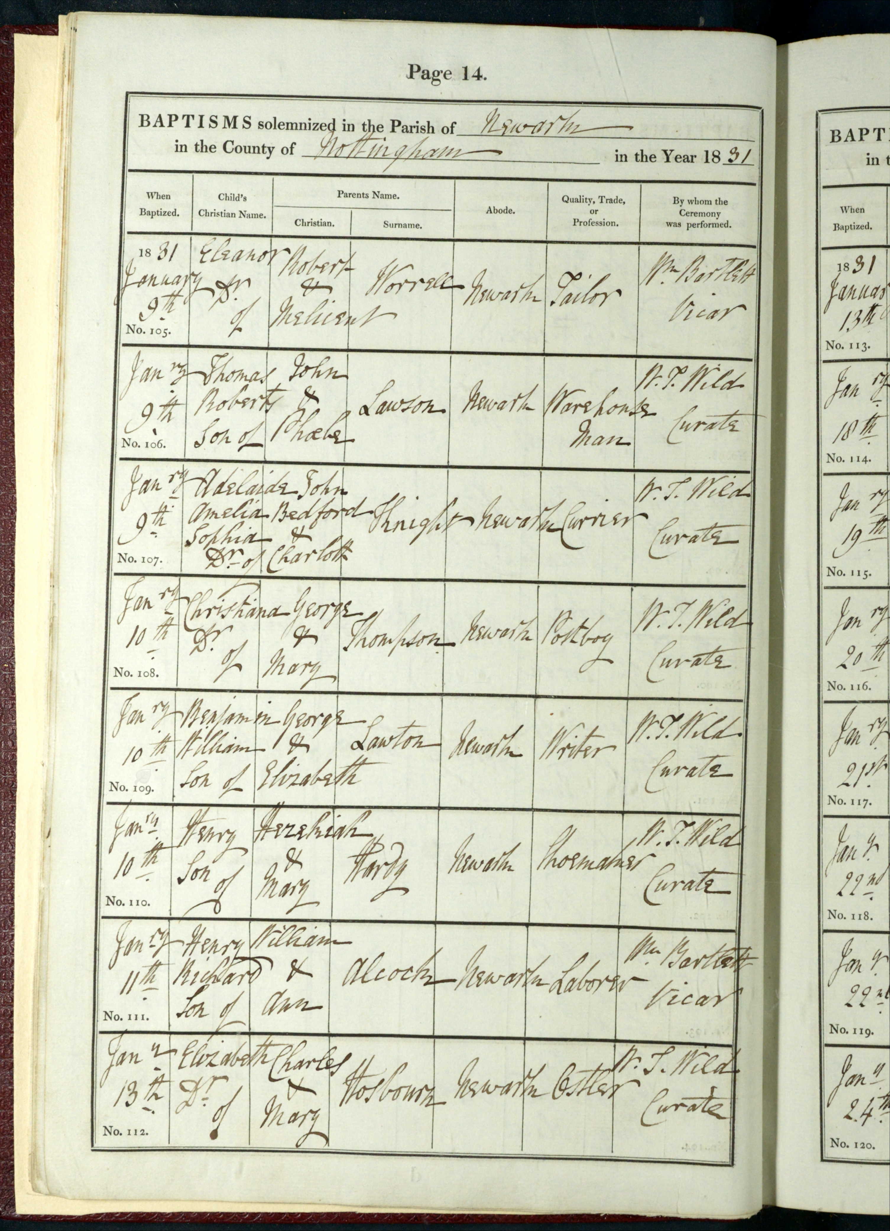 - William Alcock★ was resident on 11 Jan, 1831 in Newark on Trent, Nottinghamshire, England