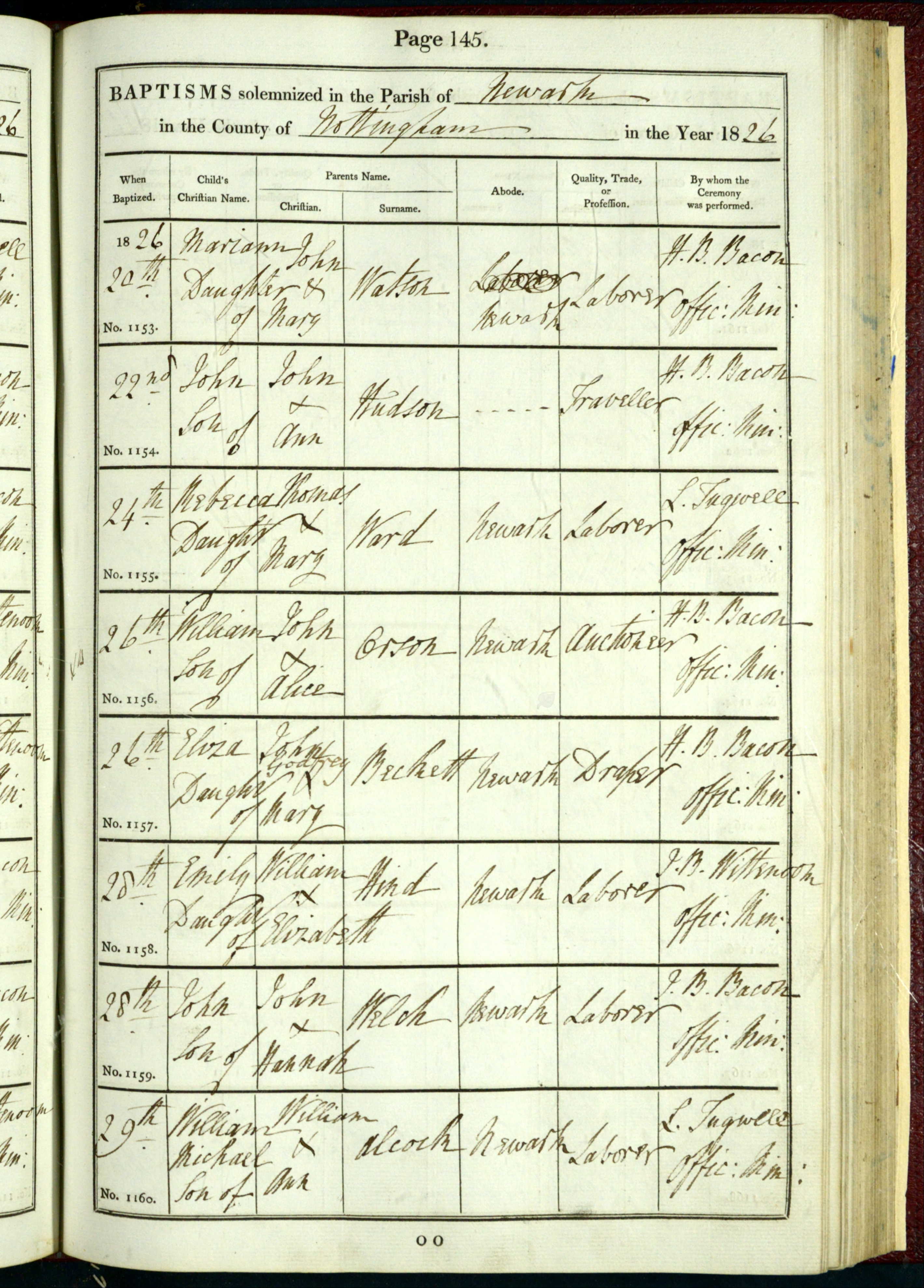 Cited from Parish Registers of St. Mary Magdalene, Newark, Nottinghamshire (Church of England)