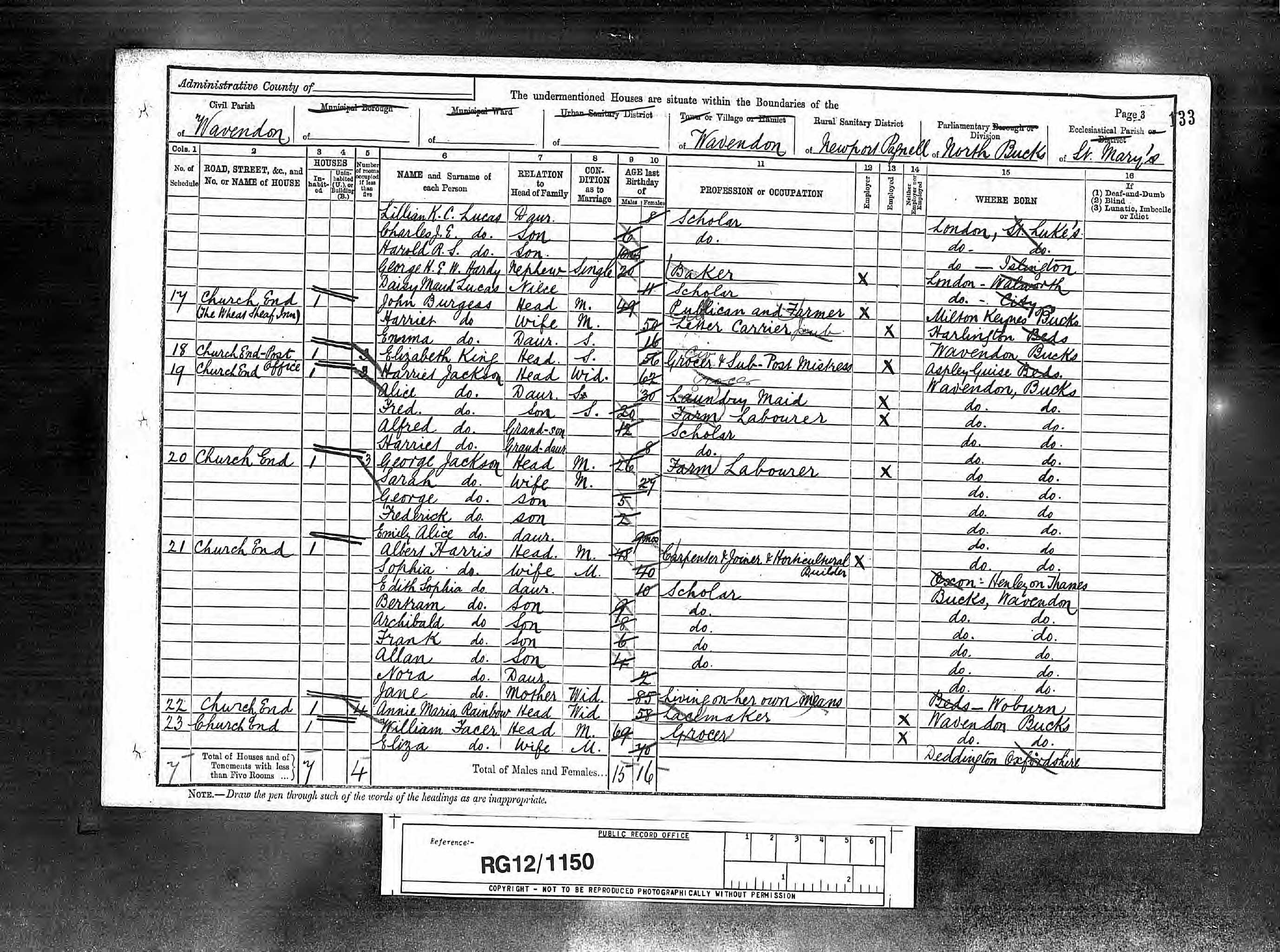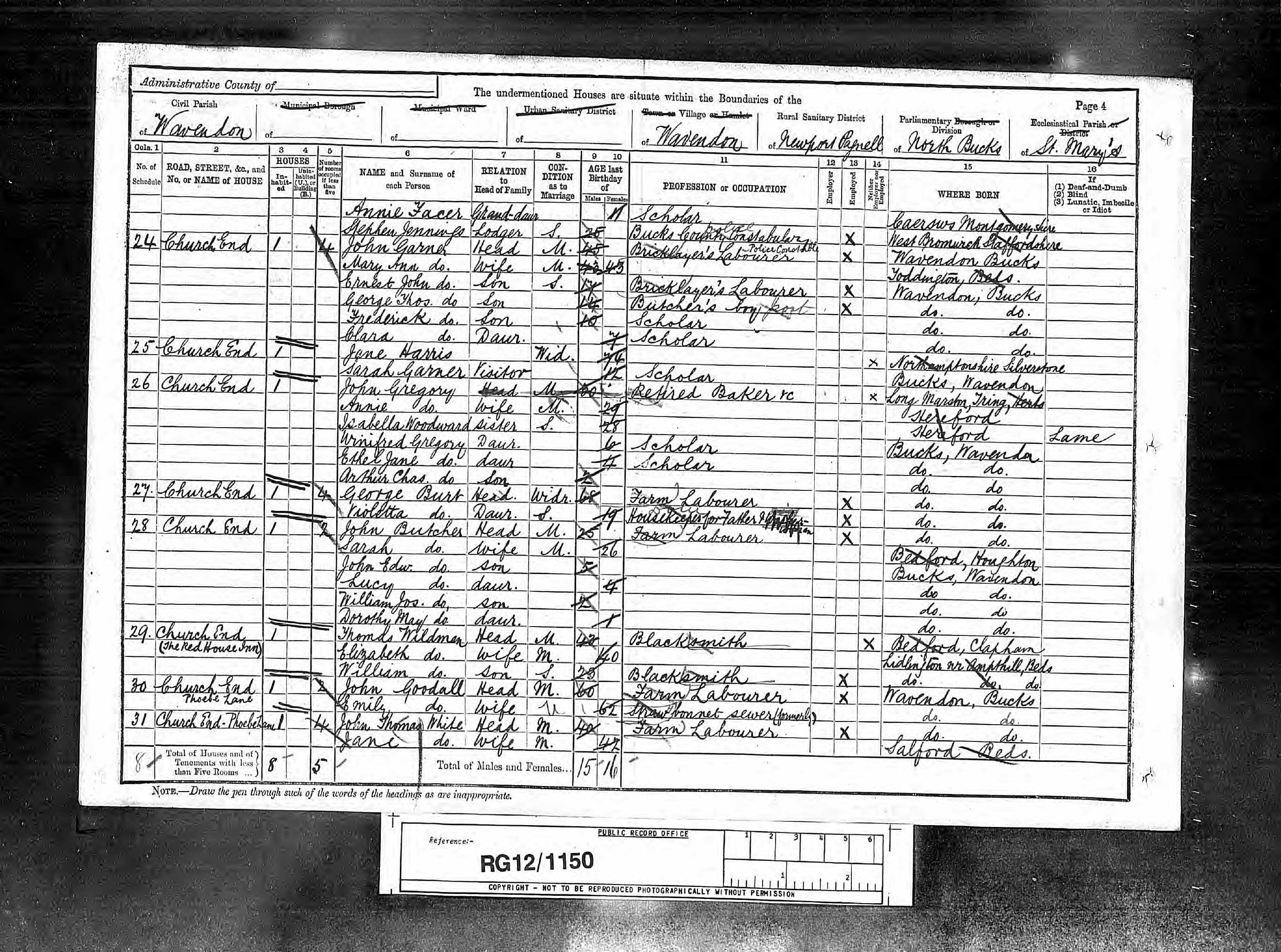 - was recorded in the census on 5 Apr, 1891 at Church End, Wavendon, Buckinghamshire, England