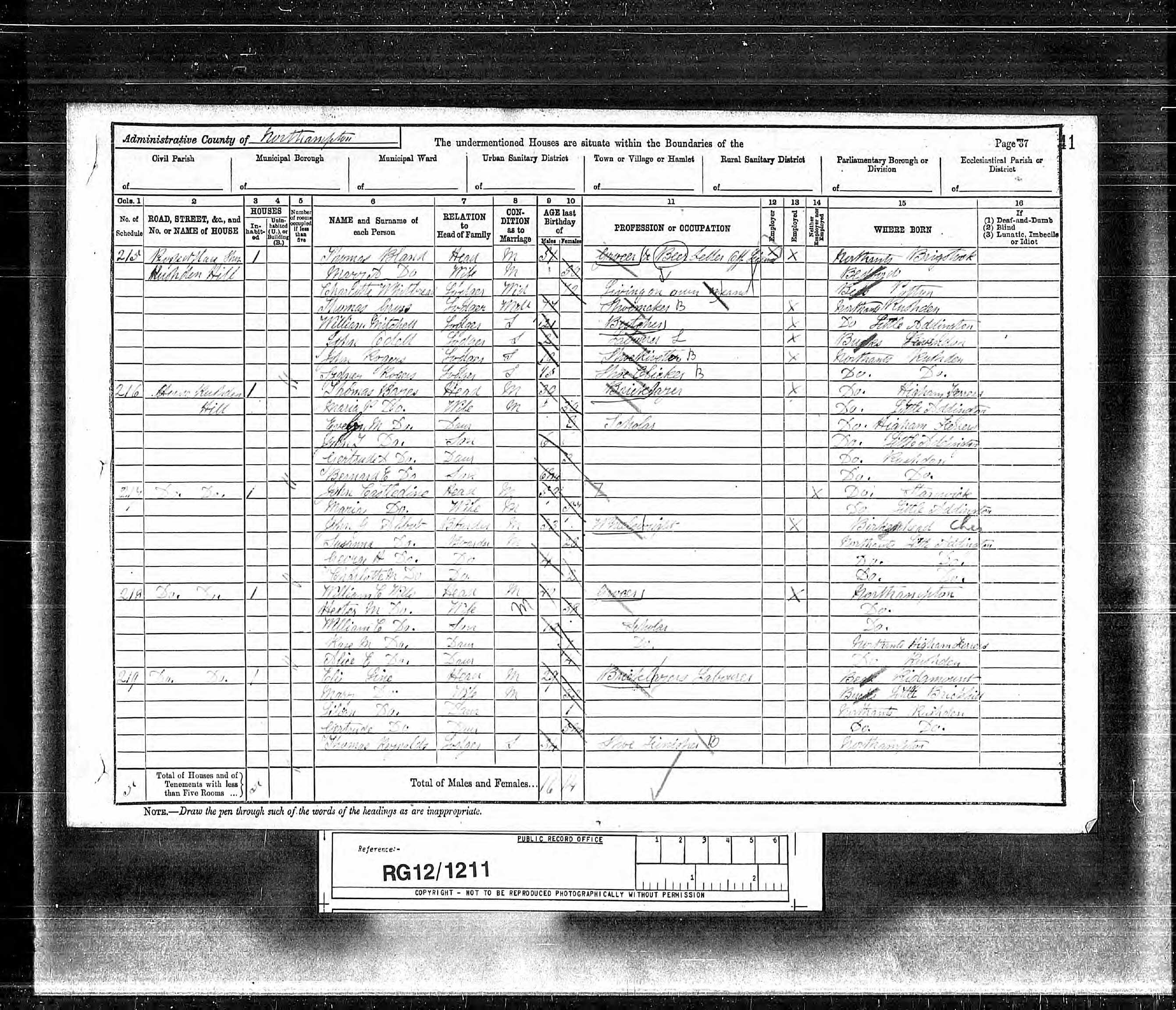 Class RG12, Piece 1211, Folio 41, Page 37, Schedule 215