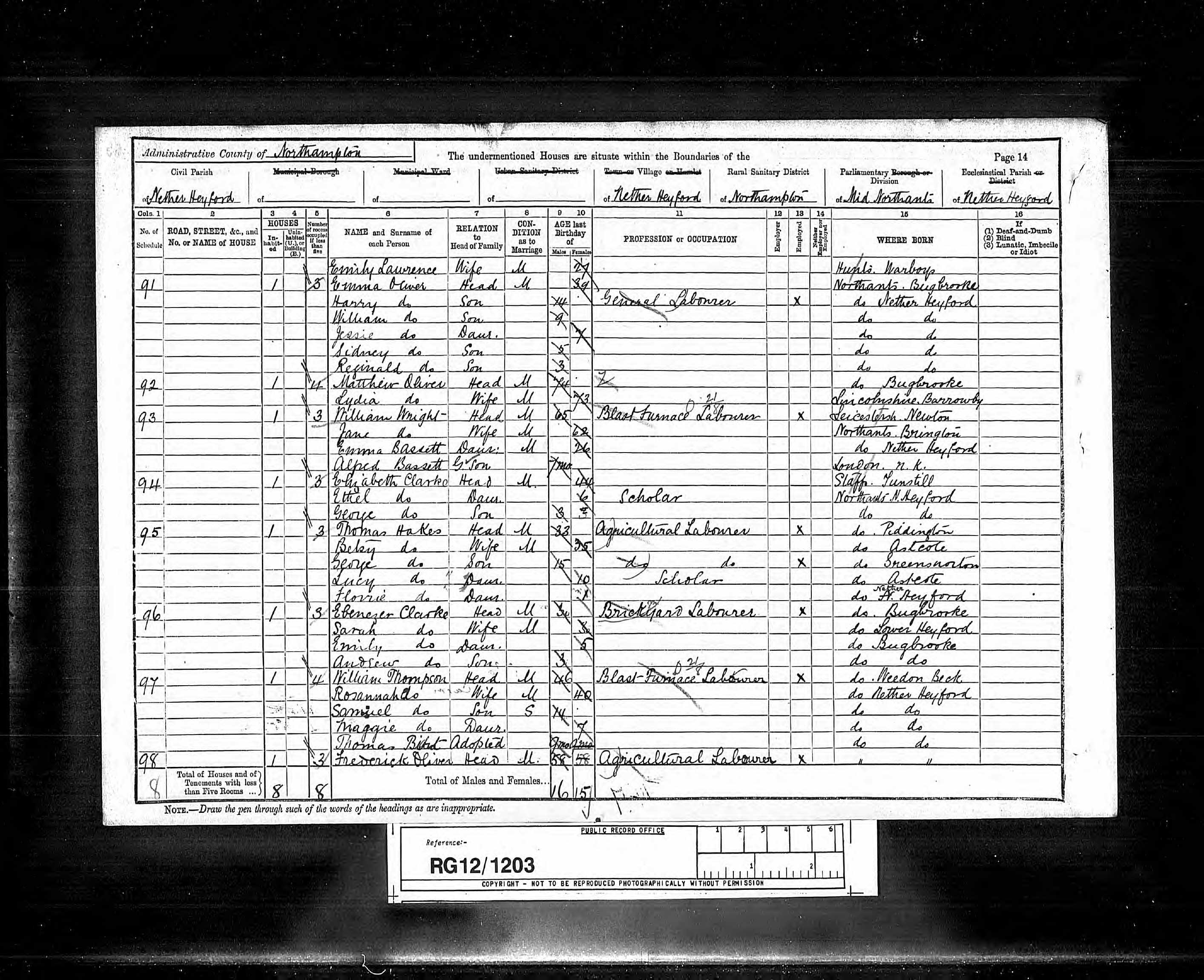 Class RG12, Piece 1203, Folio 65, Page 14, Schedule 94