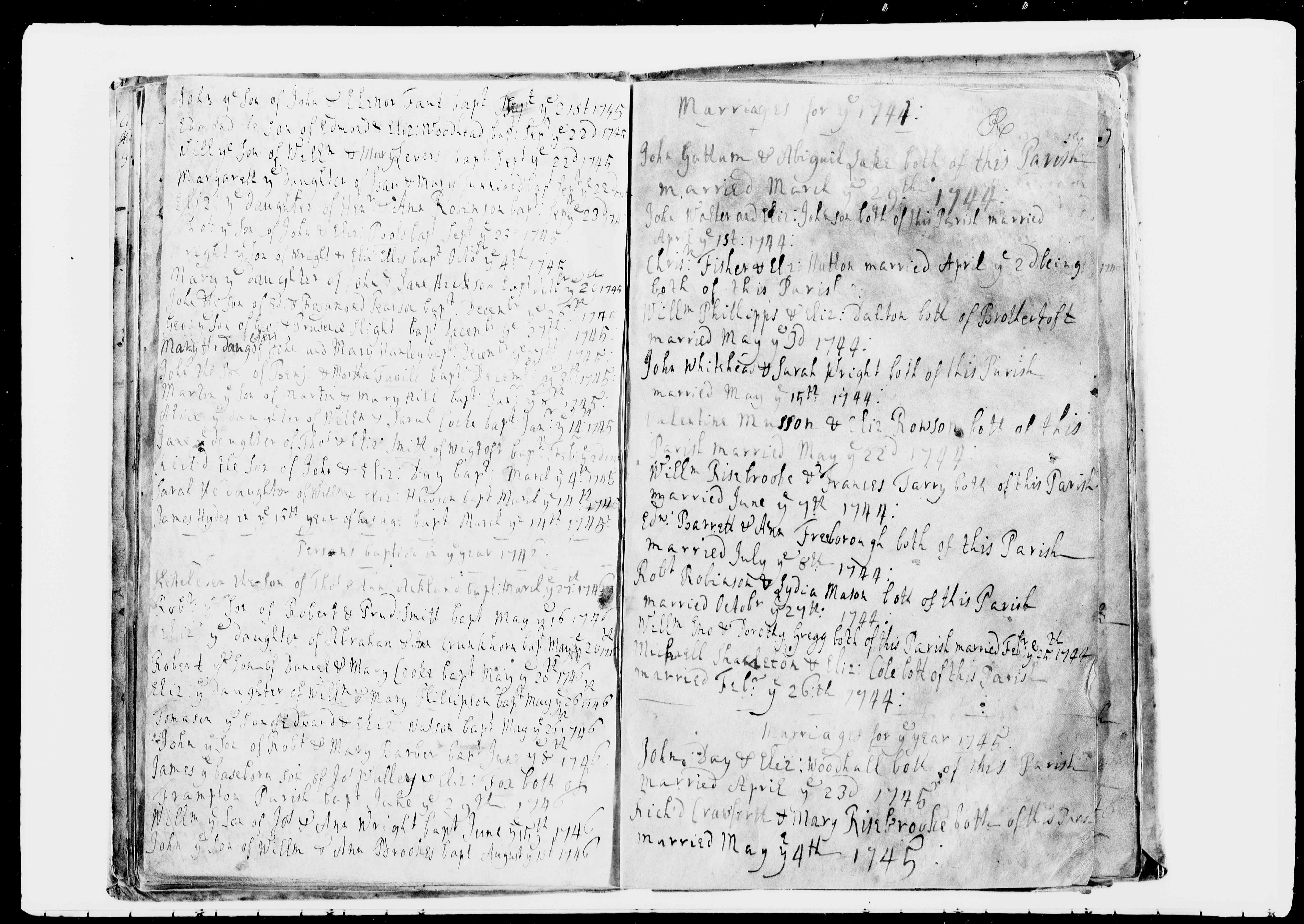 Parish Registers of St. Mary the Virgin, Swineshead, Lincolnshire; Marriage entry for Valentine Musson and Elizabeth Rowson, 22 May 1744.