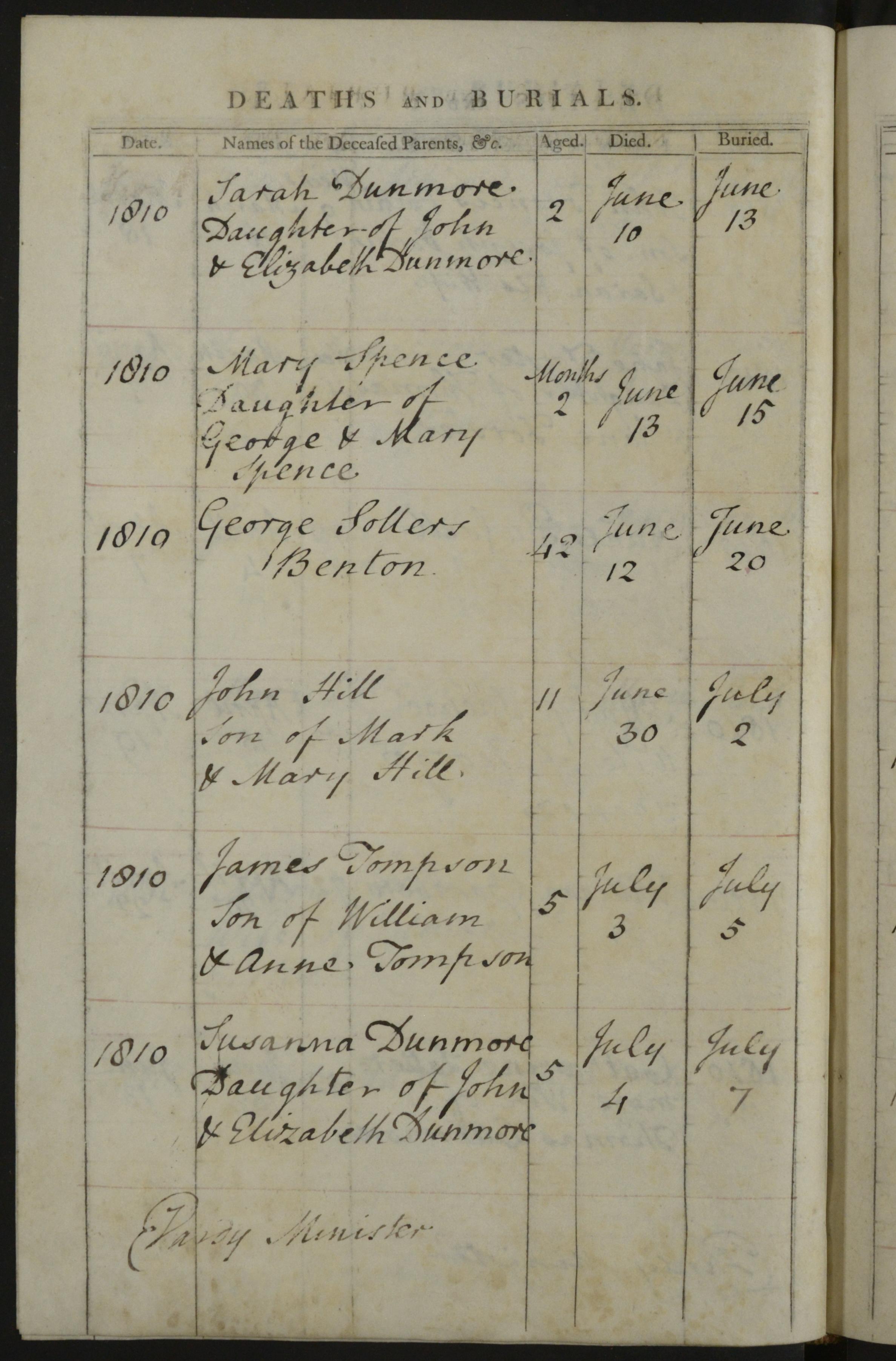 Burial entry for Susanna Dunmore, 7 Jul 1810